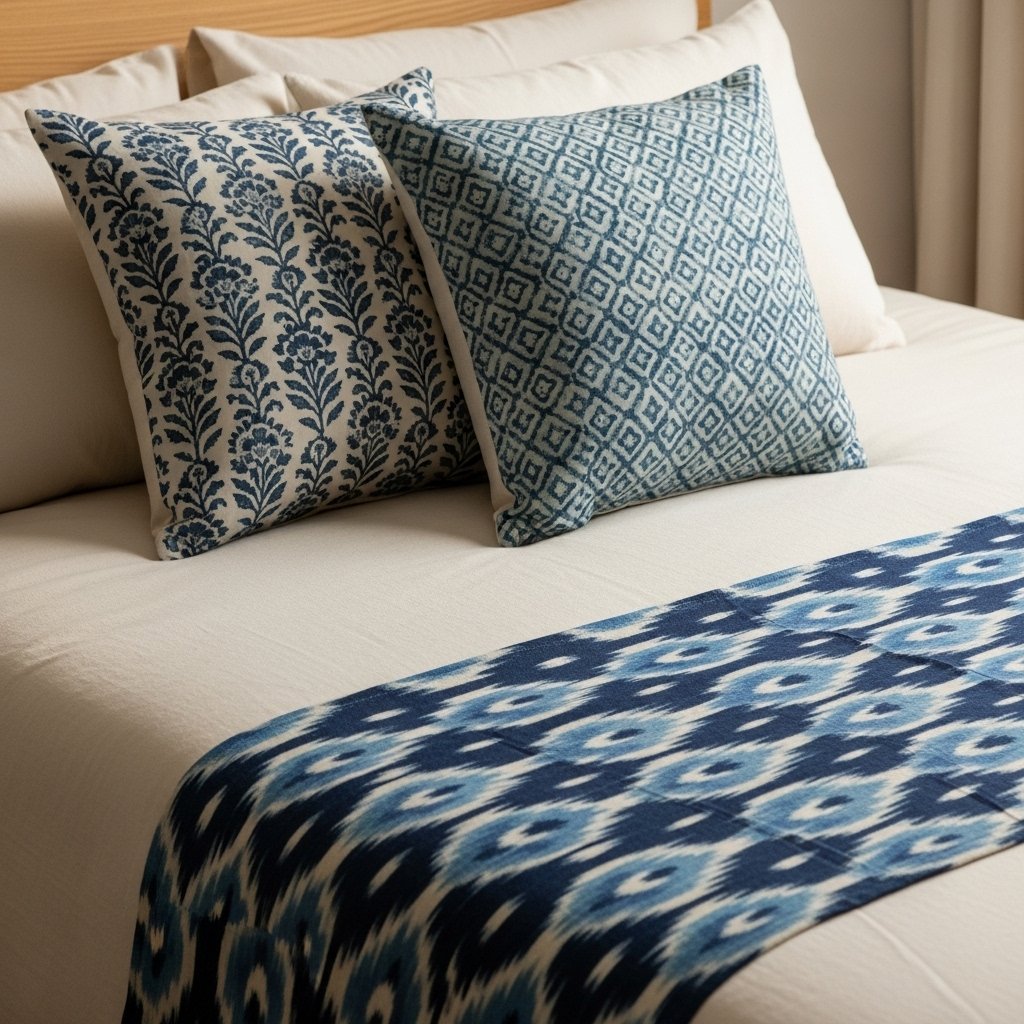 - Blue cotton or hand-block print bedsheets