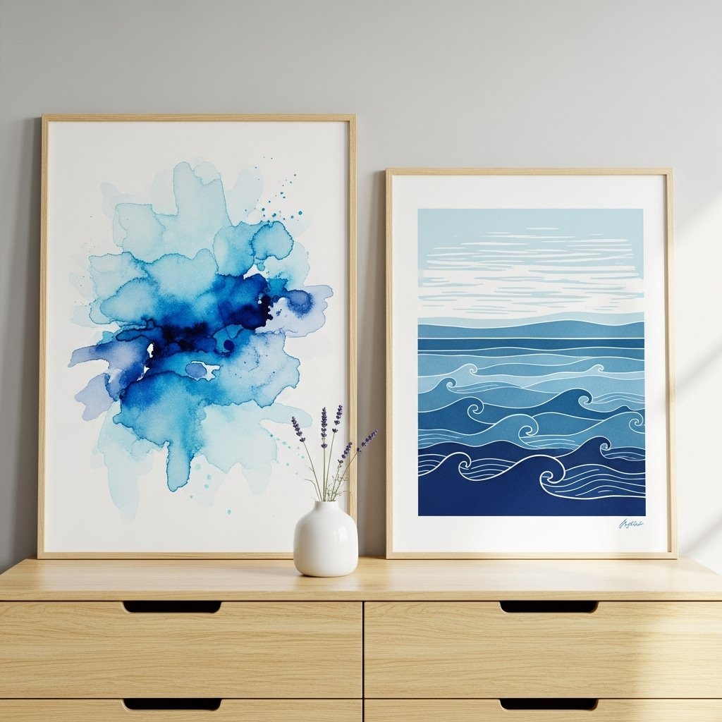 9. Wall Art with Calm Blue Themes
