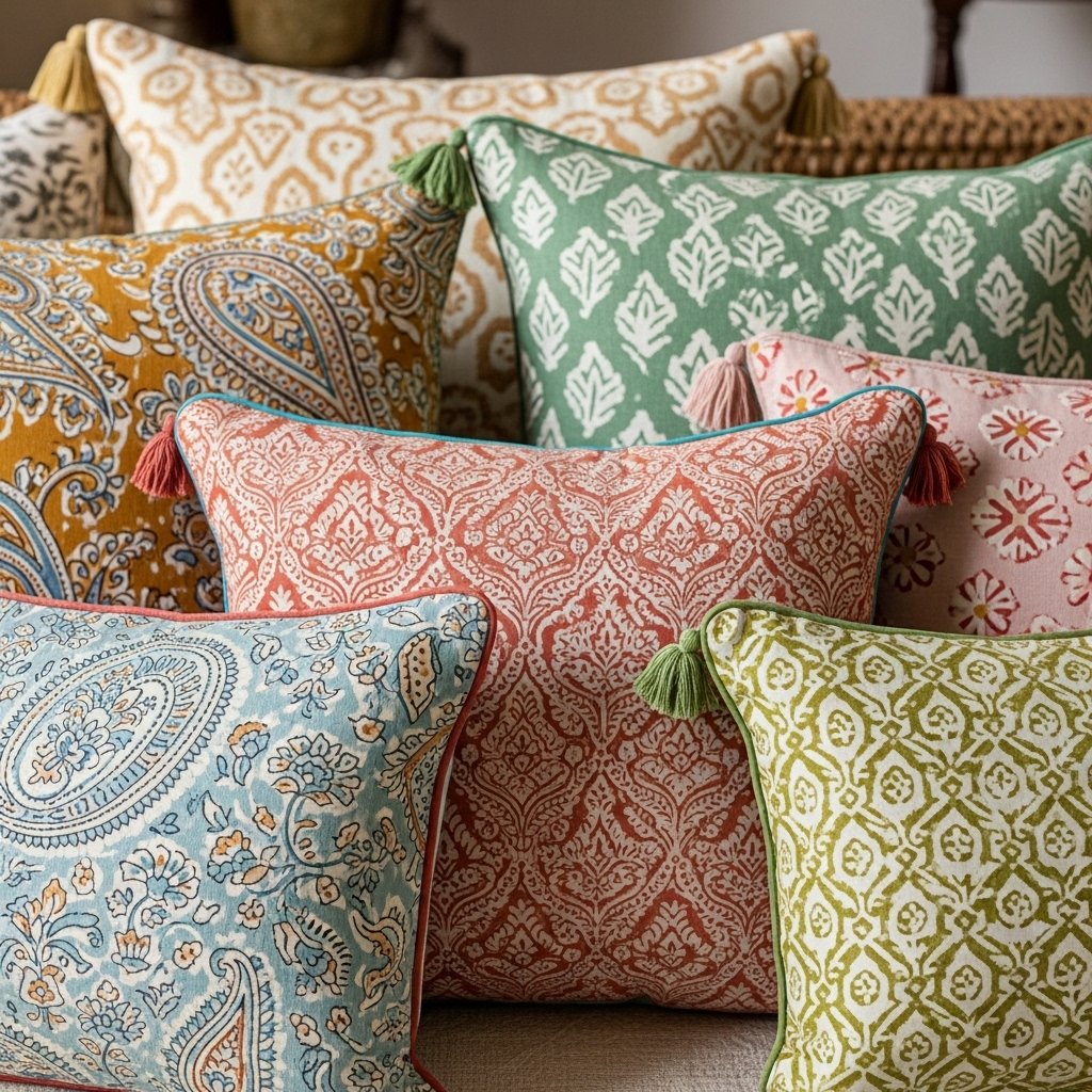 2. Handmade Cushion Covers with Indian Prints