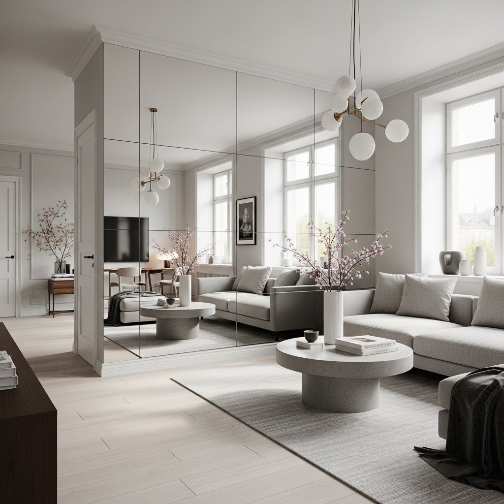 A mirror wall background is a smart solution for making small spaces appear larger. Mirrors reflect light, creating a brighter and more open feel. This idea works especially well in apartments or compact rooms. Stylish mirror designs can also act as decorative elements. It’s both functional and visually appealing.