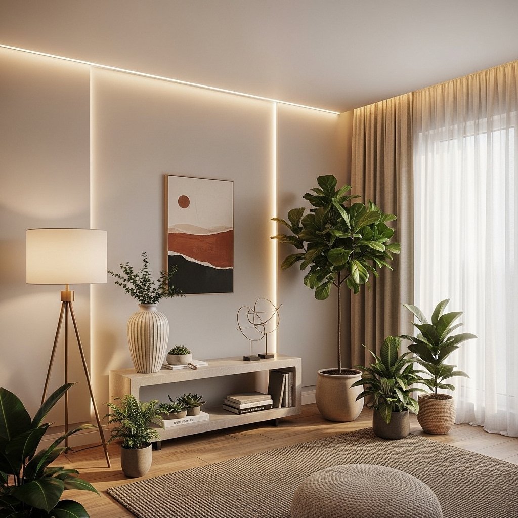LED lighting can transform a simple wall into a dynamic interior background. Hidden LED strips create a modern and futuristic look. Adjustable lighting allows you to change the mood of the space بسهولة. This idea works well behind TV units, beds, or shelves. It adds both functionality and style to contemporary interiors.