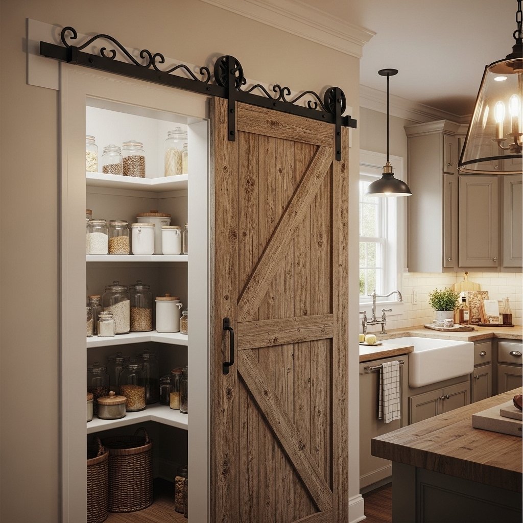 Pantry barn doors are both decorative and highly functional in kitchen spaces. They allow easy access to storage areas while concealing clutter when closed. Wooden or chalkboard-style finishes are popular for farmhouse and rustic kitchens. This design enhances kitchen organization while adding visual charm. Pantry barn doors help maintain a clean and stylish cooking environment.