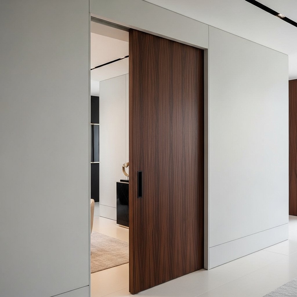 Hidden track barn doors offer a sleek and modern look by concealing the sliding hardware. Unlike traditional barn doors with visible rails, this design creates a floating, seamless effect. It is perfect for minimalist interiors where clean aesthetics are important. The hidden system also reduces visual clutter while maintaining smooth functionality. This style is ideal for luxury homes and contemporary interiors.