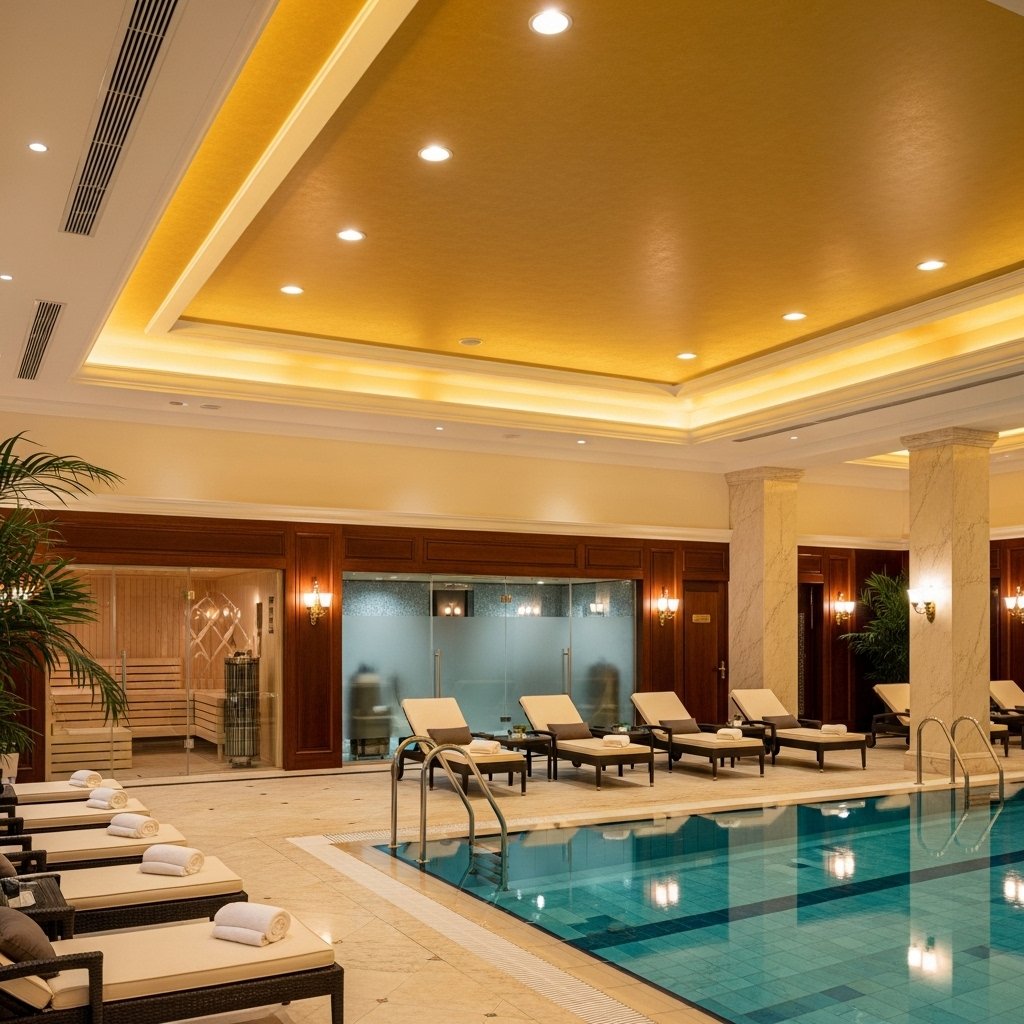 A hotel-style interior pool brings five-star luxury into residential or commercial spaces. It includes elegant lighting, polished marble finishes, and spacious lounging areas. Often, it is combined with sauna or steam room facilities. The overall design focuses on comfort, elegance, and premium aesthetics. This type of pool is ideal for those who love high-end hospitality experiences.