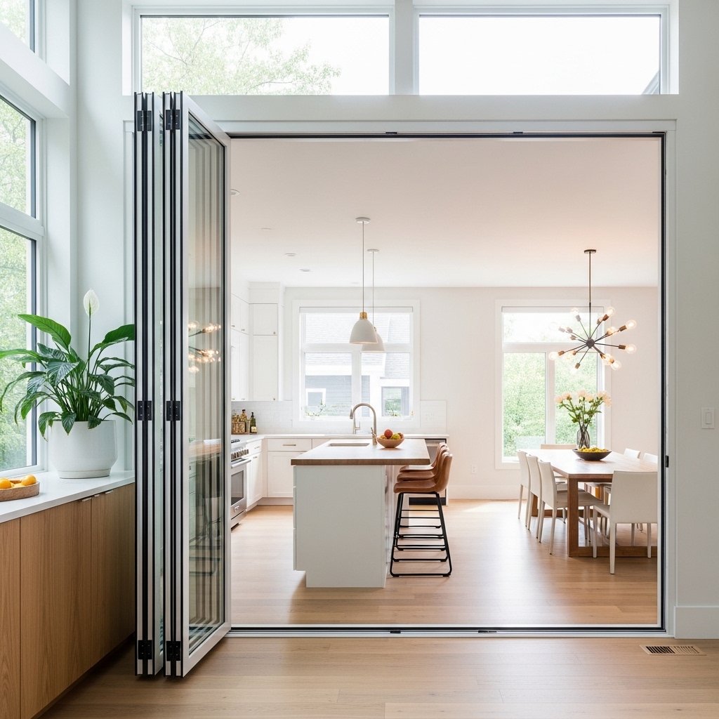 A folding interior window offers flexibility and a unique visual appeal. The panels can be folded open to create a wide connection between spaces. This design is perfect for kitchens, dining areas, or entertainment zones. It allows for easy interaction while maintaining the option to close the space when needed. It is both stylish and highly functional.