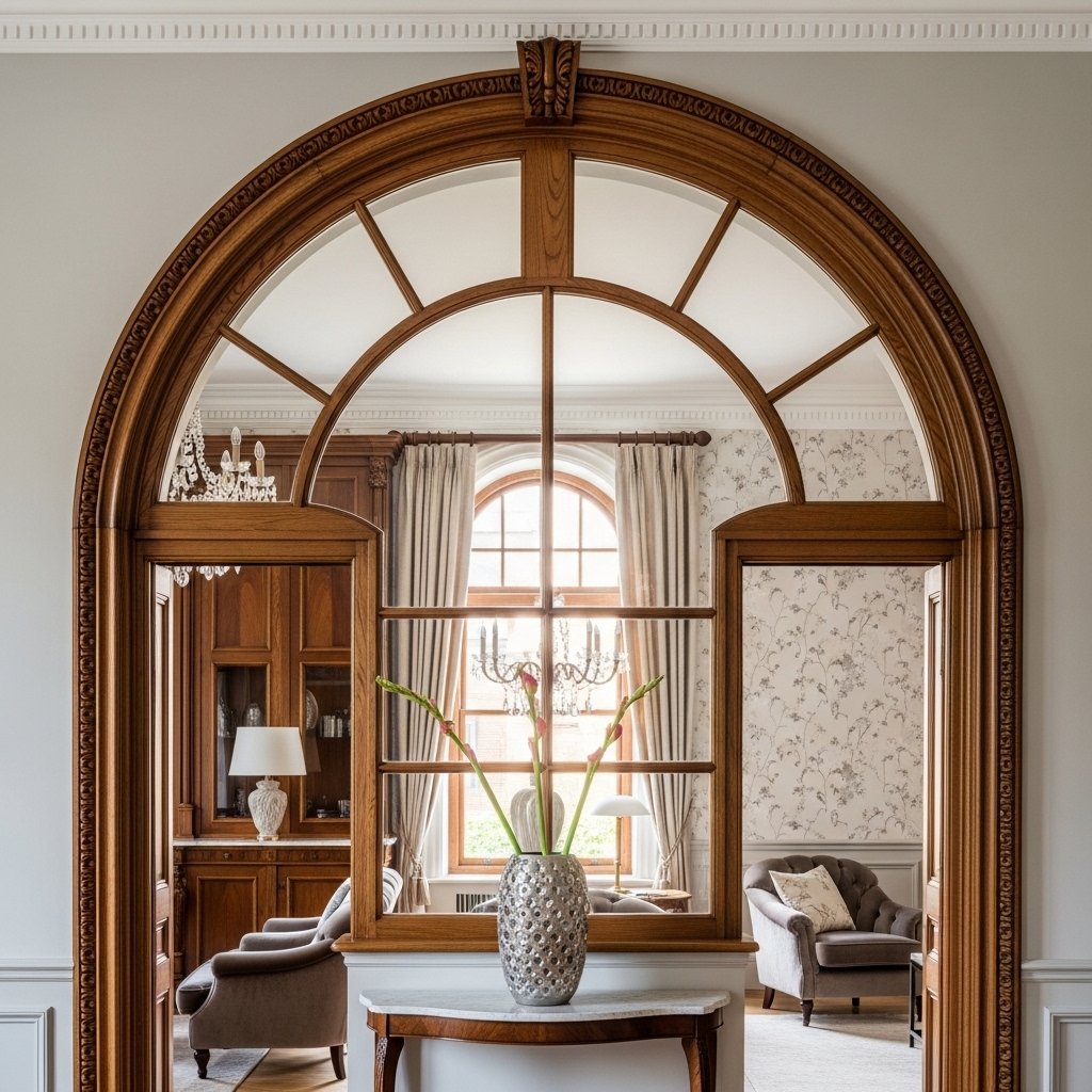 An arched interior window introduces elegance and architectural interest to your space. The curved shape softens the overall look and adds a unique design element. It works well in traditional and transitional interiors. This style can make a room feel more refined and visually appealing. It is a great way to add character without overwhelming the space.