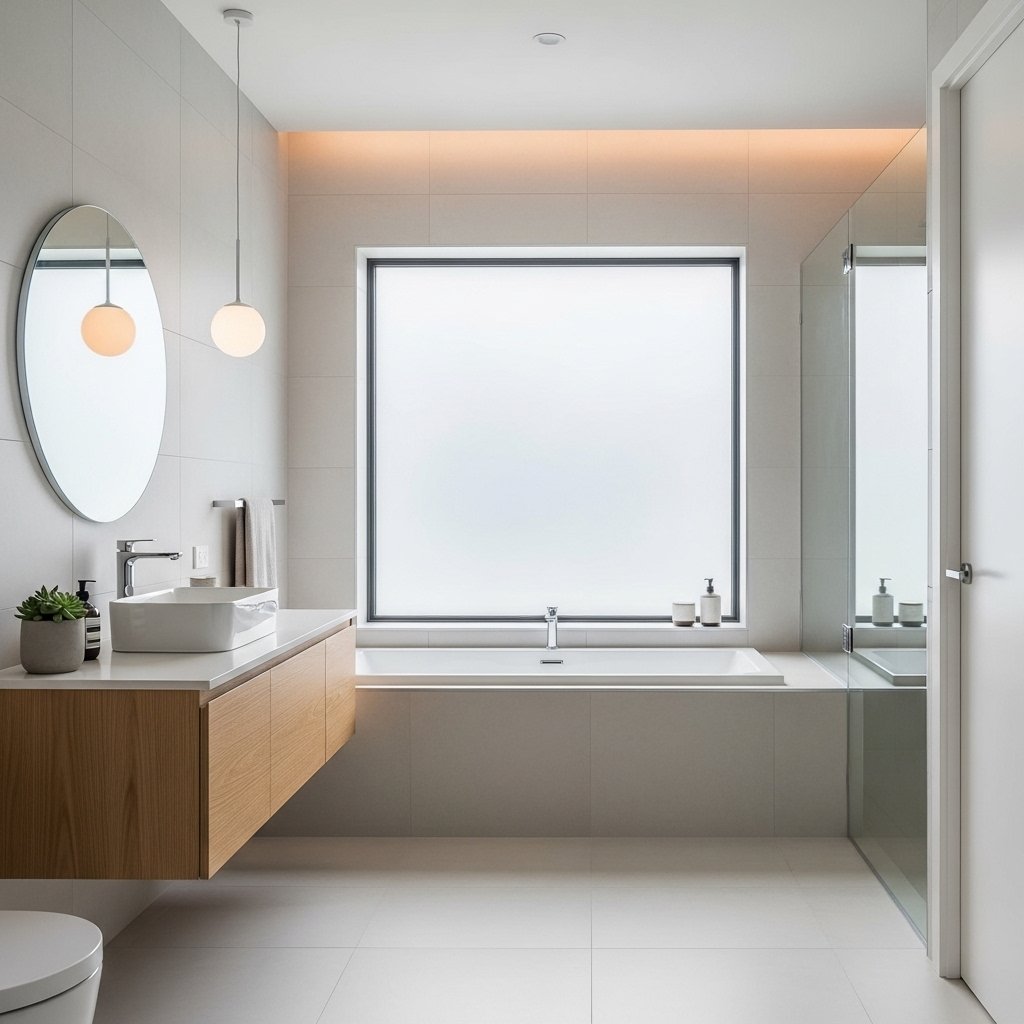 A bathroom interior window can improve ventilation and lighting significantly. It is often placed between the bathroom and another room or hallway. Using frosted or textured glass ensures privacy while allowing light to pass through. This design makes small bathrooms feel more open and less confined. It is a simple yet effective upgrade for modern homes.