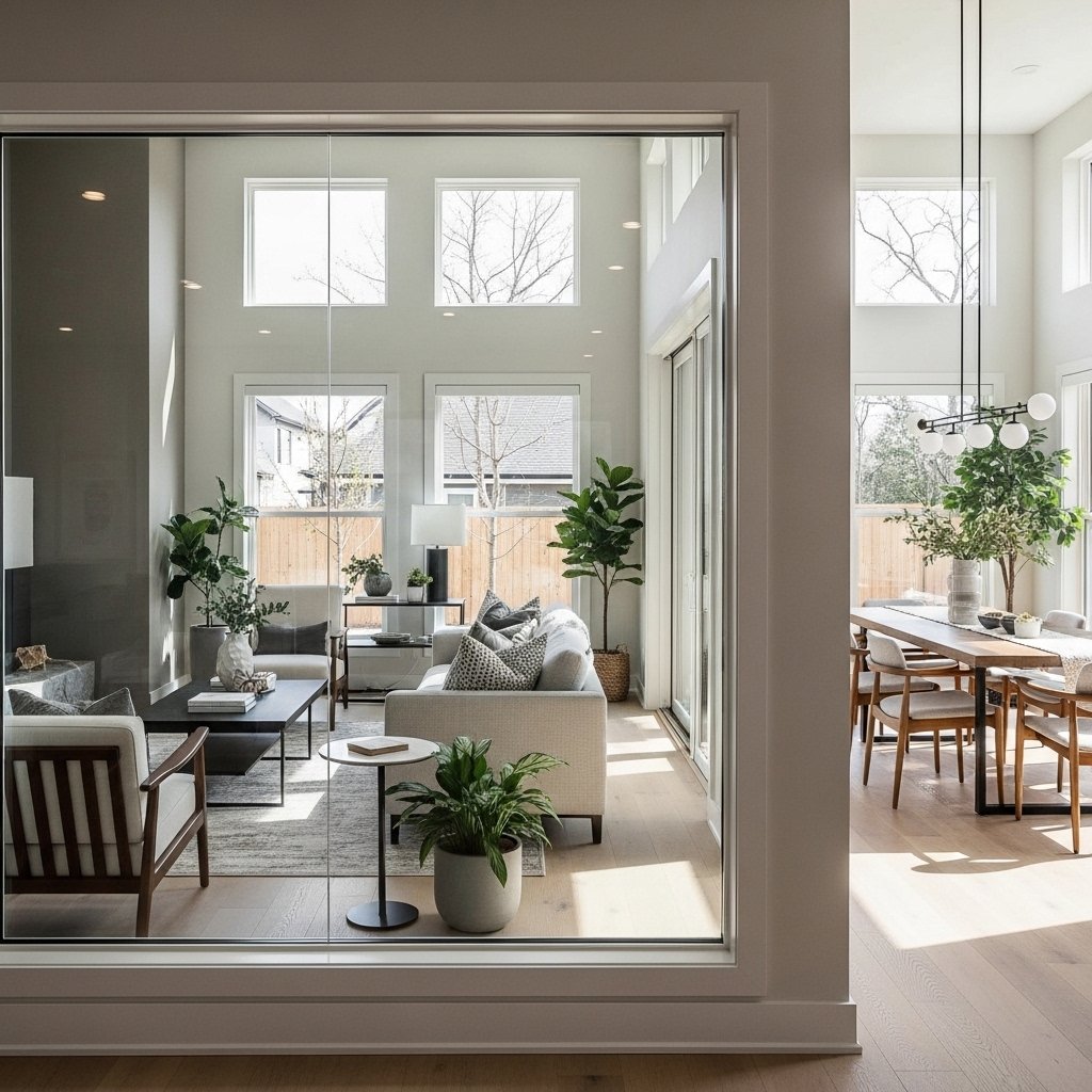 Frameless interior windows provide a sleek and modern look. Without visible frames, they create a seamless connection between rooms. This design maximizes light and maintains a clean aesthetic. It works best in contemporary homes with minimal décor. The simplicity of this style makes it both elegant and timeless.