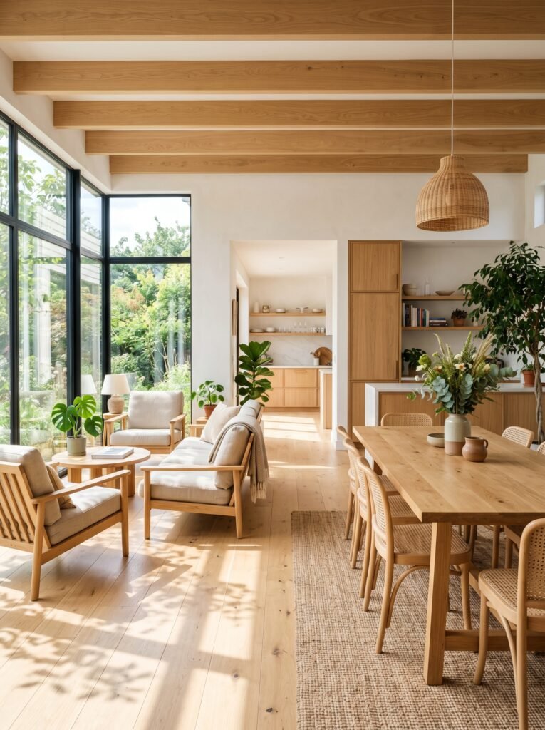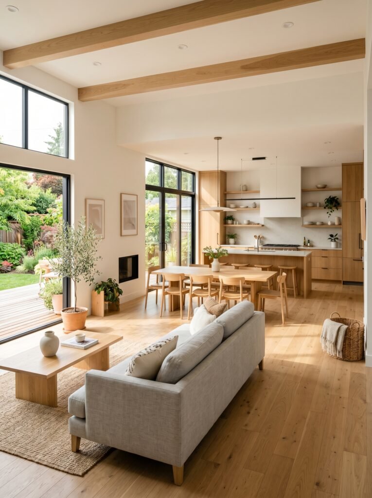 8. Open-Concept Spaces with Light Wood Elements