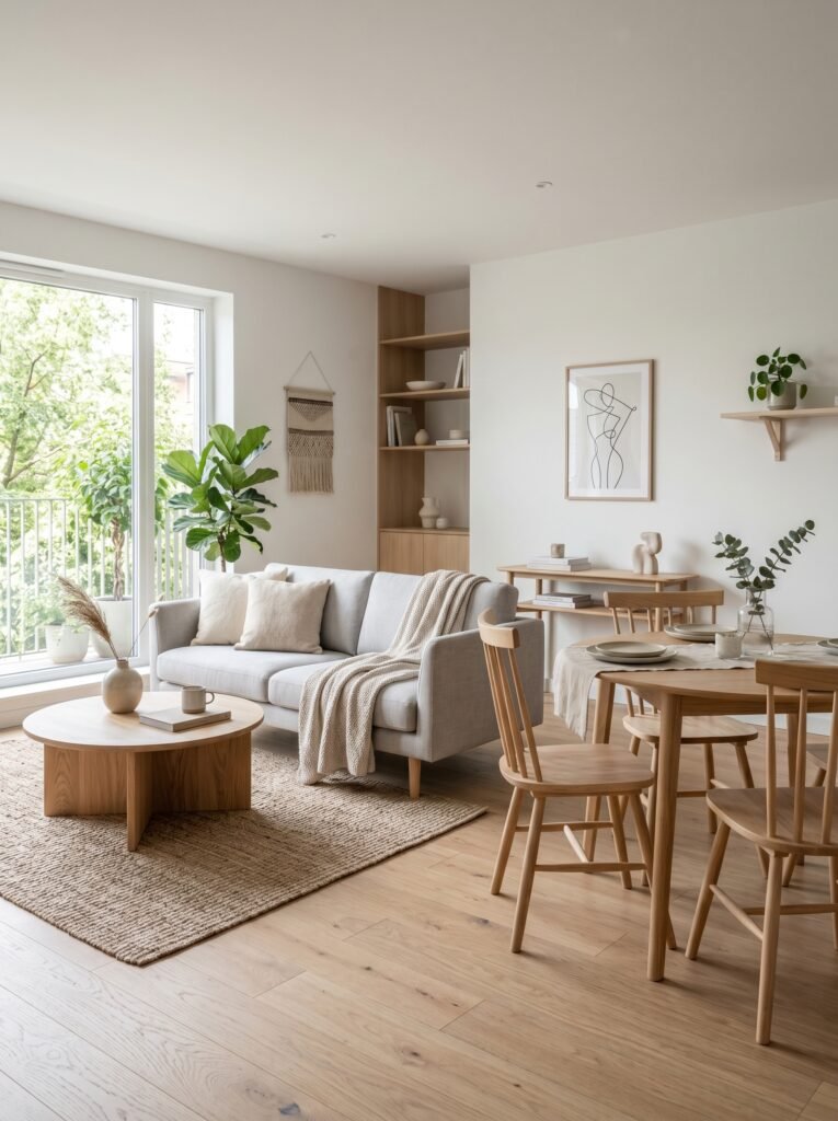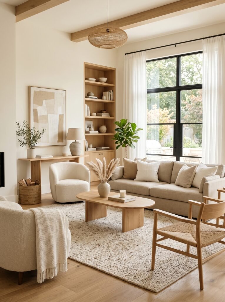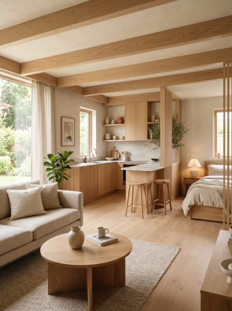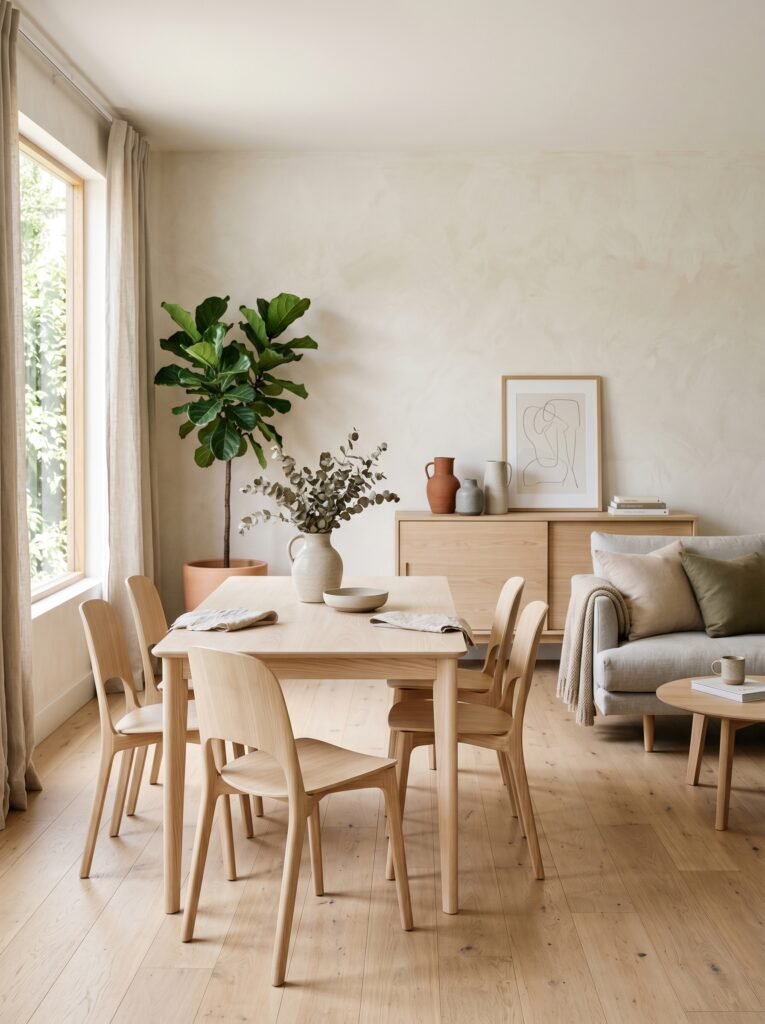 6. Japandi Style with Light Wood Accents