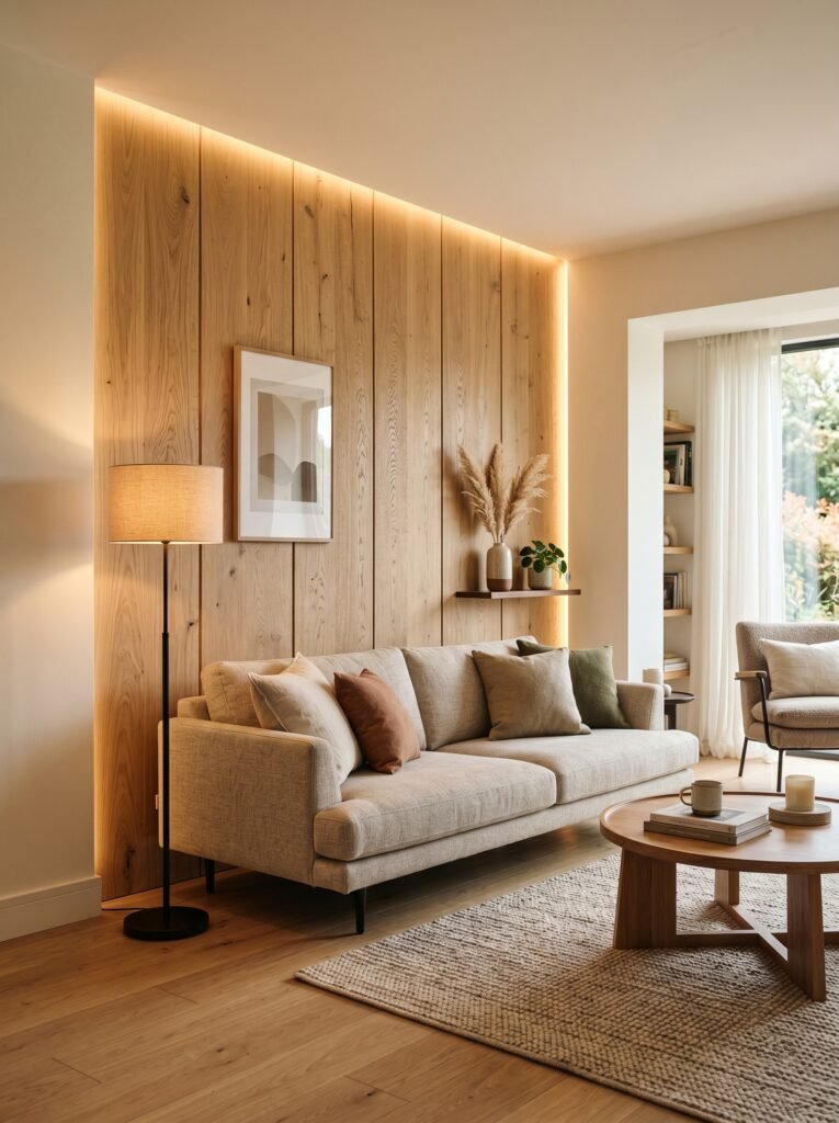 Adding light wood wall paneling is a great way to introduce texture and depth into your interior. It can be used on feature walls in living rooms, bedrooms, or hallways. The natural grain of the wood adds visual interest without overwhelming the space. This design element also enhances warmth and acoustic comfort. Light wood paneling creates a modern yet cozy environment.