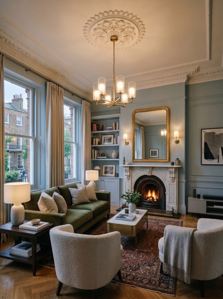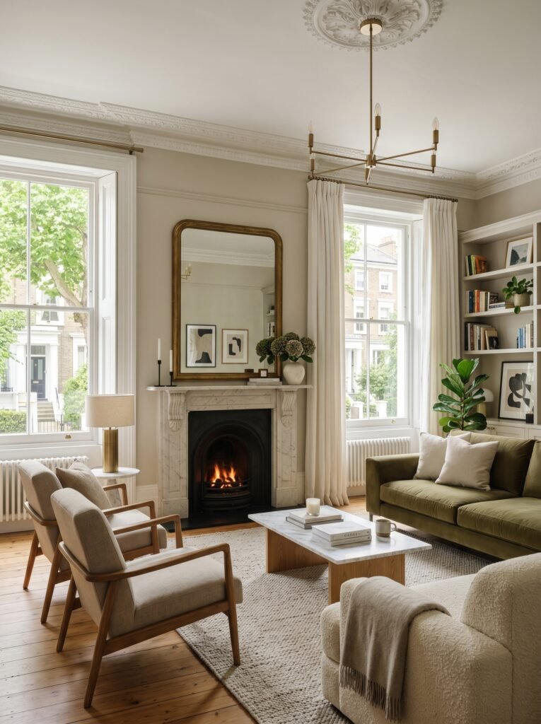 One of the defining aspects of a London townhouse interior is its original architectural charm. Features like crown molding, fireplaces, and ceiling roses should be preserved whenever possible. These elements add character and create a strong foundation for your design. Pairing these traditional details with modern furnishings creates a beautiful contrast. This approach ensures your home feels both timeless and updated.