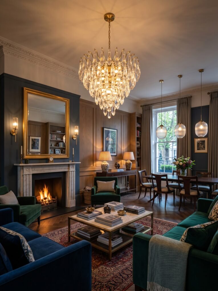 Lighting is a crucial element in elevating a London townhouse interior. Statement chandeliers, pendant lights, or modern fixtures can serve as focal points. Layered lighting, including ambient, task, and accent lighting, adds depth and warmth. Choose designs that complement both classic and contemporary elements. Proper lighting enhances both the functionality and aesthetic appeal of your home.
