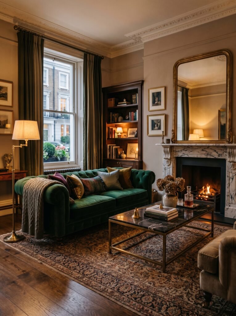 This style is popular because it combines classic British architecture with modern living. People love the sophisticated look, neutral color palettes, and stylish furniture used in these homes. It creates a balanced space that feels both luxurious and comfortable, making it appealing for many homeowners.
