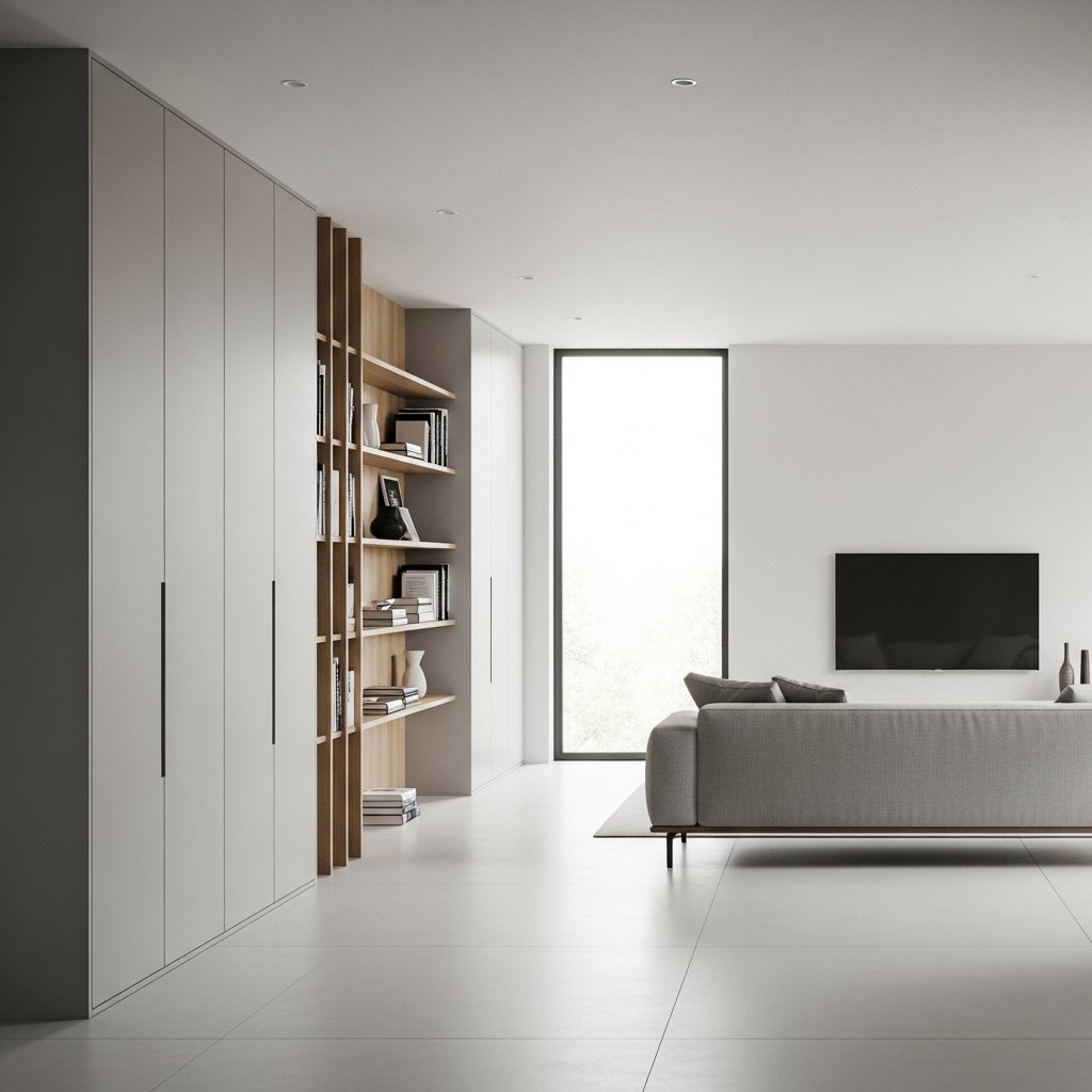 Hidden storage is a hallmark of luxury minimalist interiors, helping maintain a clutter-free environment. Built-in cabinets, concealed shelves, and multifunctional furniture keep everyday items out of sight. This ensures that the space remains clean and visually pleasing at all times. Smart storage solutions also improve functionality without compromising design. A well-organized home contributes to the overall sense of luxury and calm.