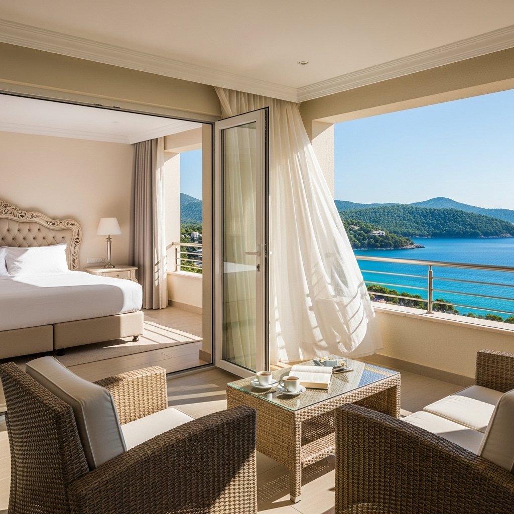 A private balcony adds an exclusive and relaxing feature to a mansion bedroom. It provides a personal outdoor retreat where you can enjoy fresh air and scenic views. Elegant doors and stylish outdoor furniture enhance the transition between indoor and outdoor spaces. This feature increases both functionality and luxury appeal. It creates a serene escape that complements the grandeur of the bedroom.