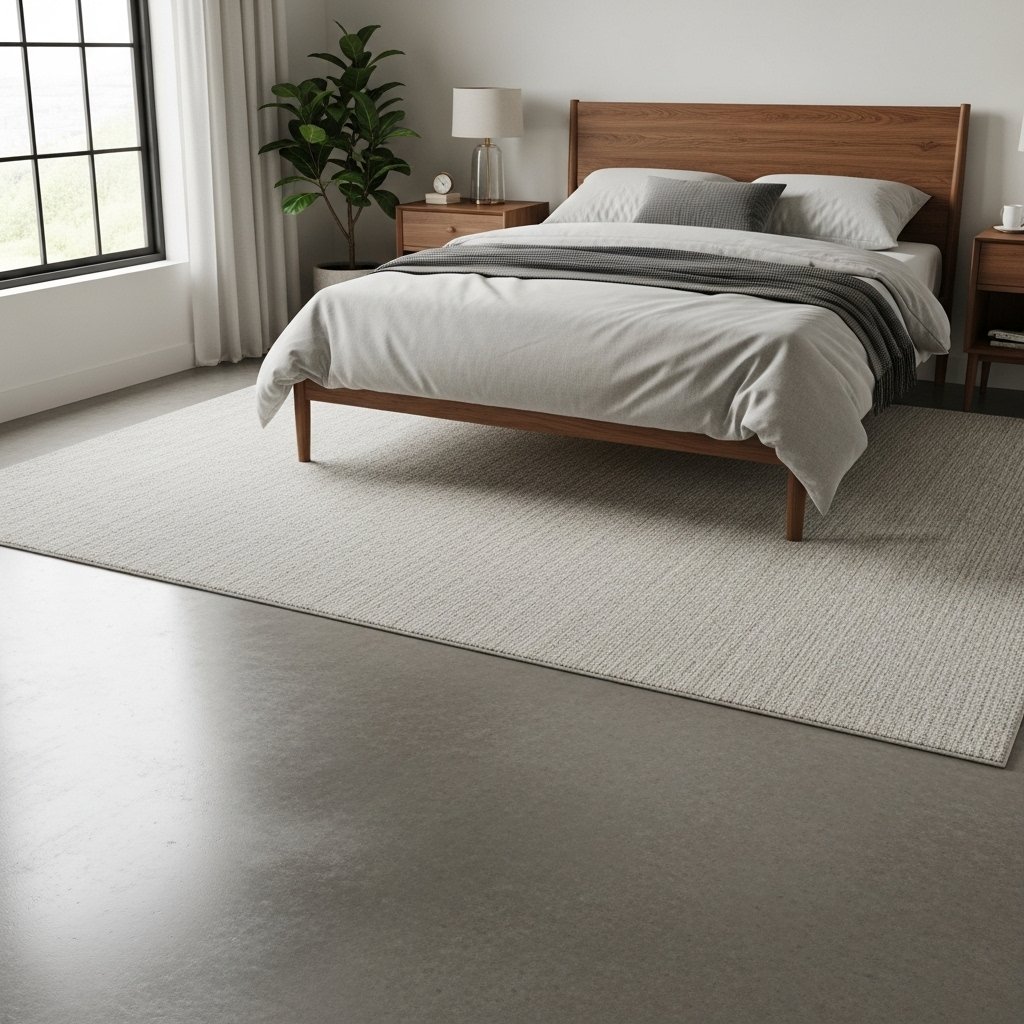 A simple, neutral rug can anchor the room and add warmth without overpowering minimalism. Solid colors, low-pile textures, or subtle geometric patterns work best. Position the rug under the bed or seating area to create zones and add comfort. Rugs help soften the room while maintaining a sleek, masculine aesthetic. This small addition improves both functionality and style.