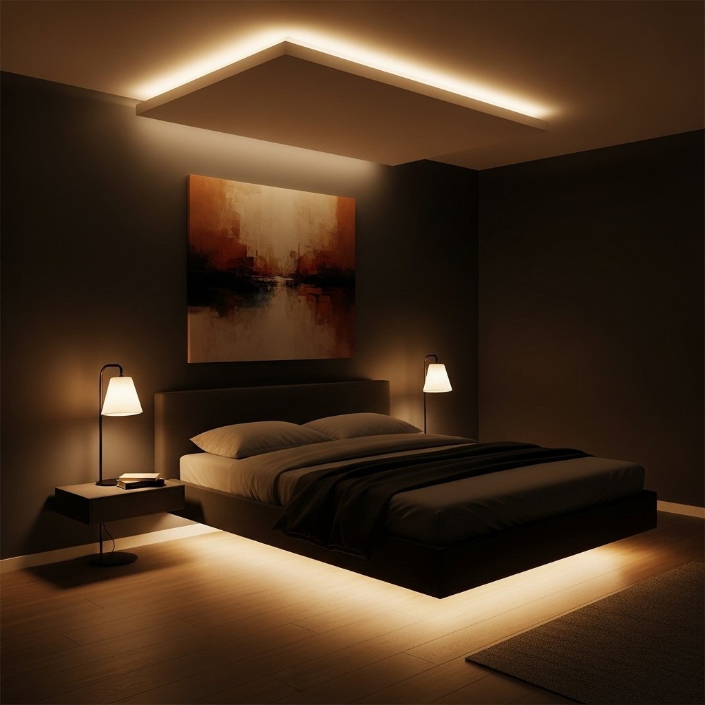 - LED strip lights or bedside lamps with warm light