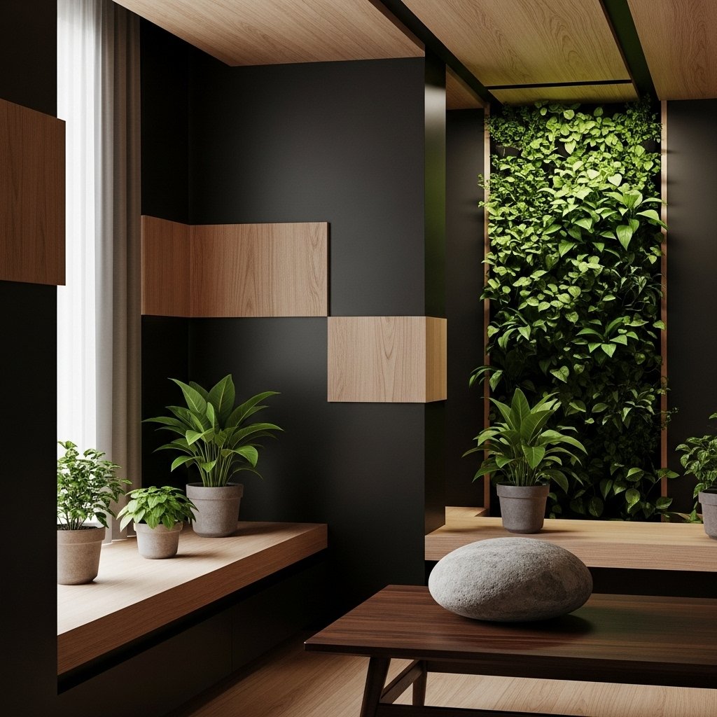 - Black, gray, or wooden furniture with clean lines