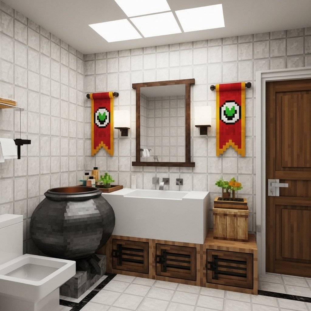 A bathroom can make your Minecraft home feel more complete and realistic. Use quartz or light-colored blocks for a clean look. Cauldrons can act as sinks, and trapdoors can represent cabinets. Add mirrors using banners or creative block placement. This design is simple yet effective for enhancing realism in your build.