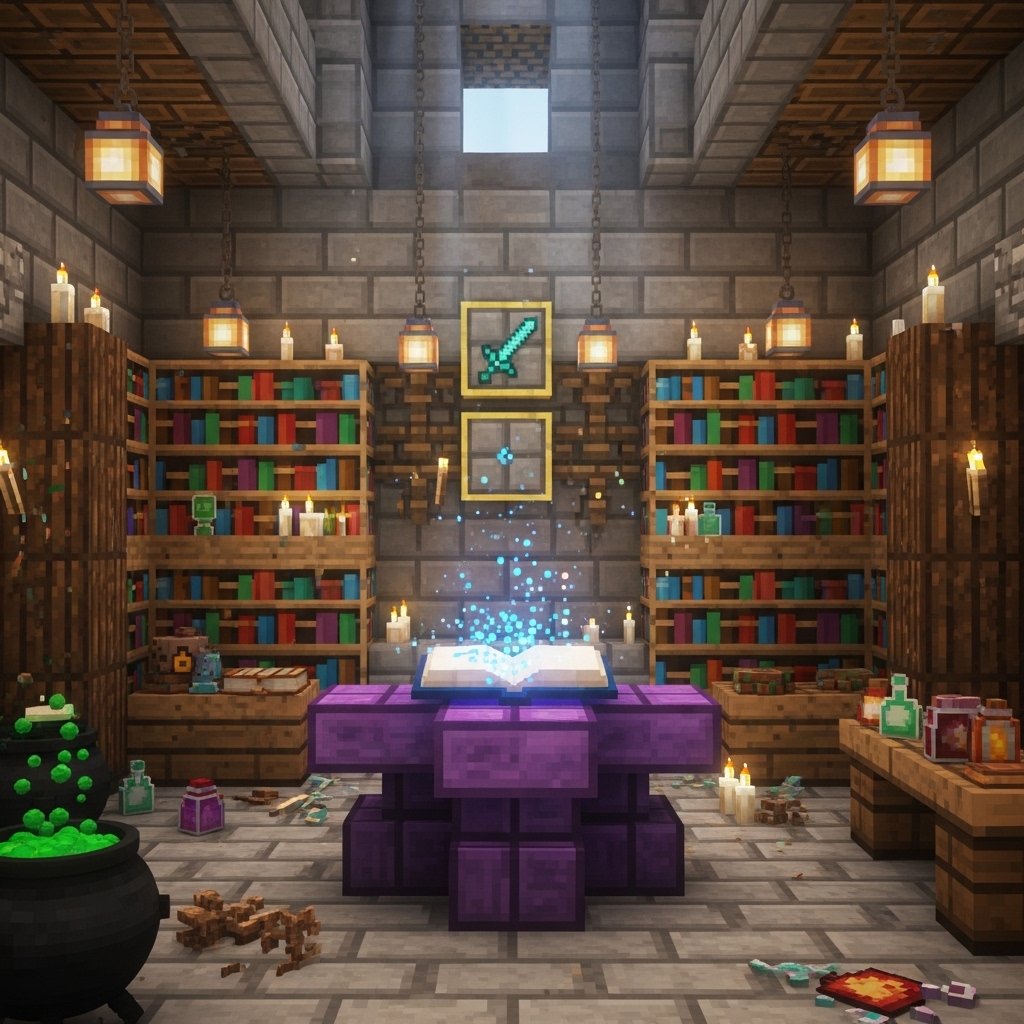 An enchanting room is both functional and visually magical. Place an enchantment table in the center surrounded by bookshelves for maximum efficiency. Use carpets or unique flooring blocks to enhance the design. Add lighting like lanterns or candles to create a mystical atmosphere. This setup not only looks great but also improves your gameplay progression.
