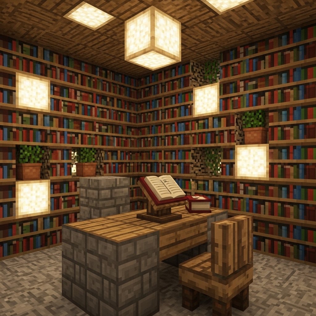 A study room adds depth and functionality to your build. Use bookshelves to line the walls and create a library feel. Add a desk using slabs and place a lectern or decorative items on top. Lighting should be soft and focused to maintain a calm atmosphere. This space is ideal for players who enjoy detailed and immersive interiors.