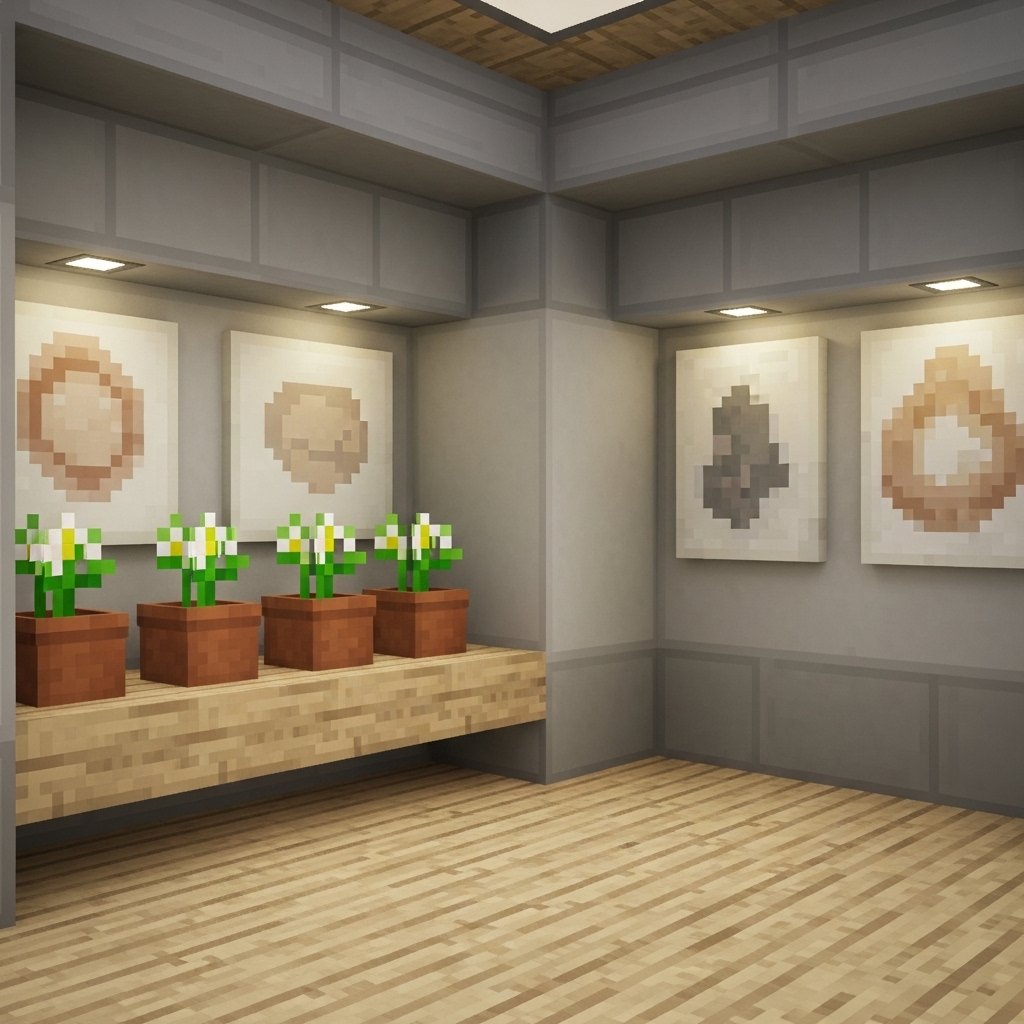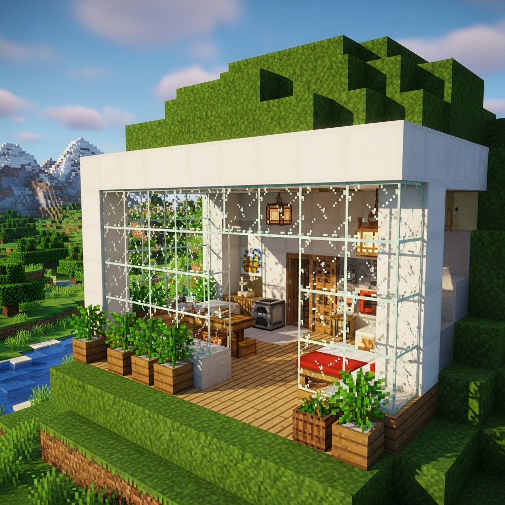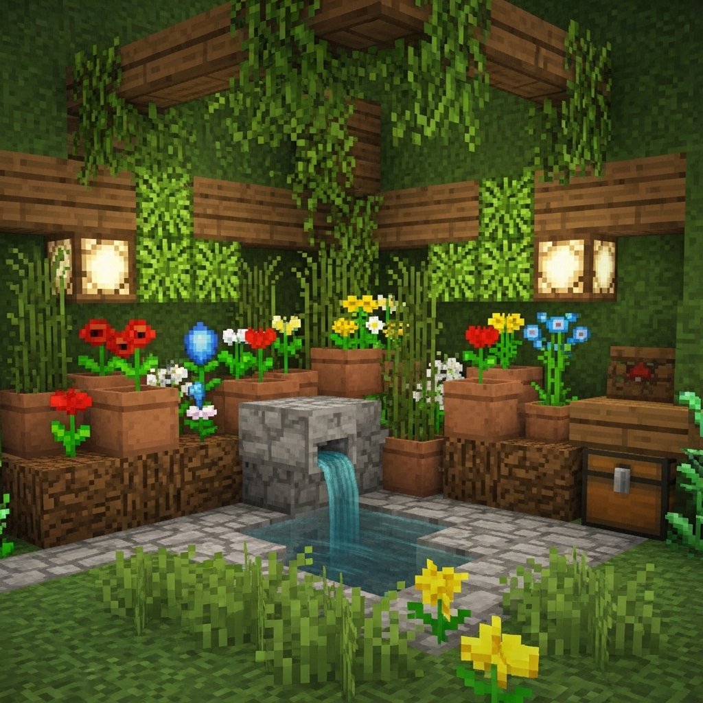 Adding a small indoor garden can bring life to your Minecraft house interior. Use flower pots, leaves, and small water features to create a natural feel. Even a tiny corner can be transformed into a green space. This idea enhances the visual appeal and creates a calming environment. It’s perfect for players who enjoy aesthetic builds.