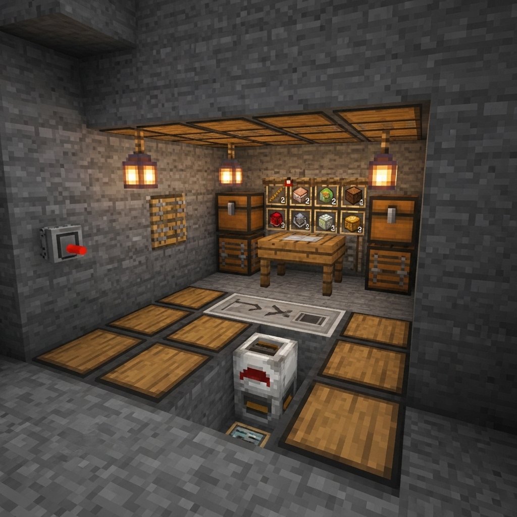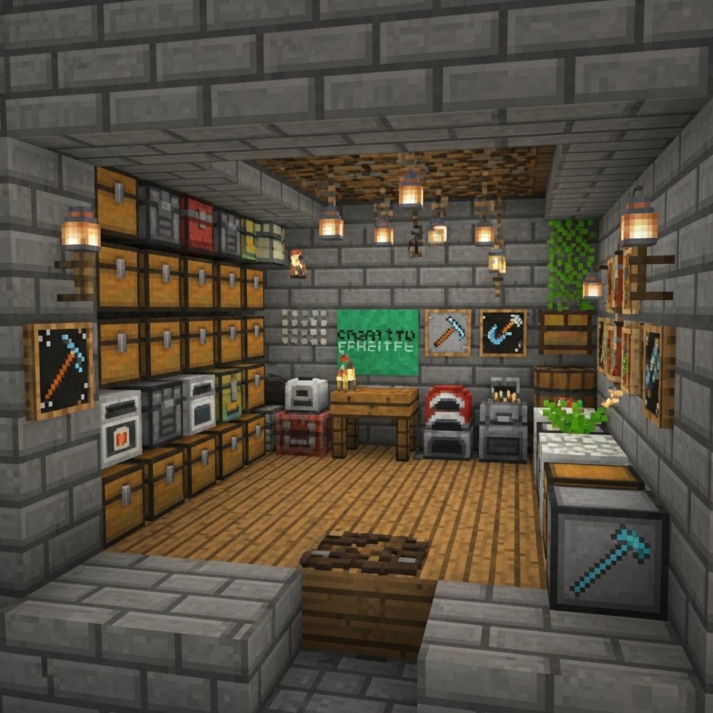 A hidden crafting corner helps keep your interior clean and uncluttered. Use trapdoors, pistons, or simple wall designs to conceal your crafting table, furnace, and other utilities. When needed, you can easily access them without sacrificing aesthetics. This design is especially useful in survival mode where space is limited. It adds both functionality and a touch of creativity to your house.