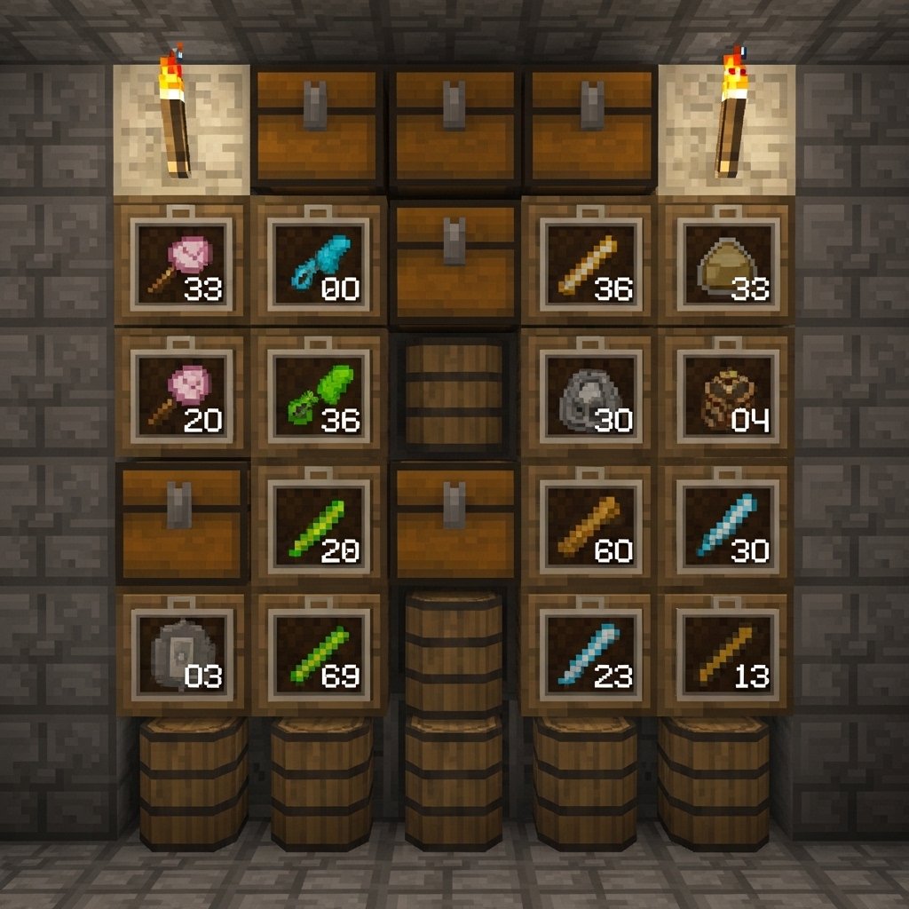 Storage is crucial in any Minecraft small house interior, and a dedicated storage wall can solve many space issues. Use chests, barrels, and item frames to create an organized and visually pleasing storage area. Placing storage vertically saves floor space and keeps everything within easy reach. Labeling your items helps maintain organization over time. This setup ensures your house remains tidy and efficient.