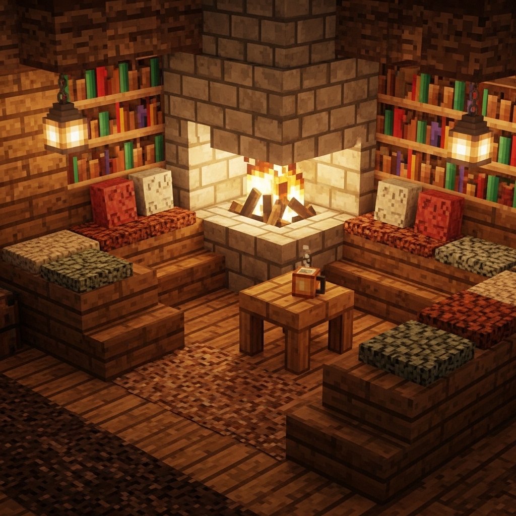 A fireplace can instantly make your Minecraft small house interior feel warm and inviting. Use campfires, netherrack, or fireplaces built with stone bricks to create the effect. Surround it with seating using stairs or slabs for a cozy vibe. Be mindful of fire safety by using non-flammable blocks nearby. This feature adds both charm and comfort to your home.