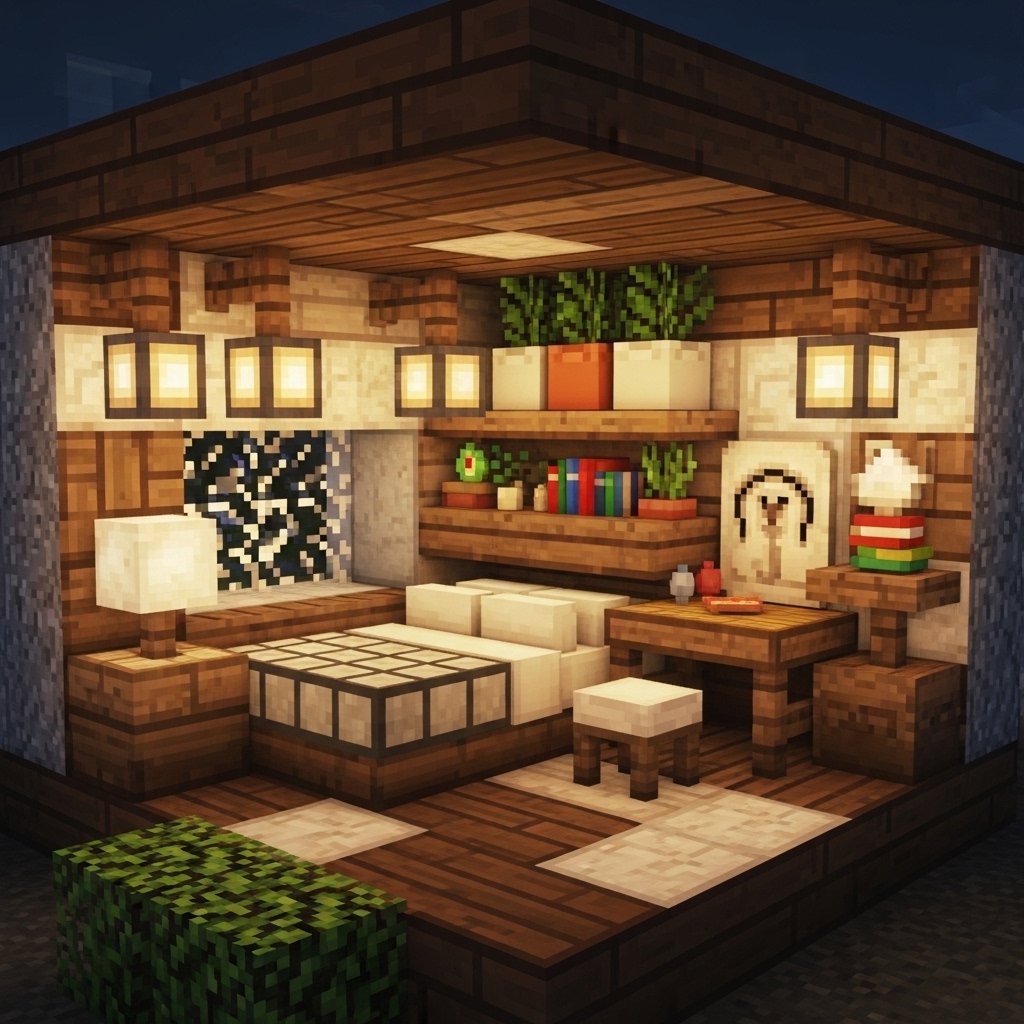 A Minecraft small house interior refers to the inside design and decoration of a compact house in the game Minecraft. It focuses on arranging furniture, storage, lighting, and decorative items in a limited space. The goal is to make the house look organized, functional, and visually appealing while using fewer blocks.