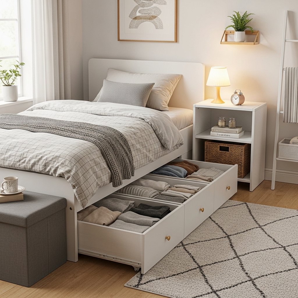 Vertical storage solutions are essential for small rooms with limited floor space. Floating shelves, wall-mounted organizers, or tall slim dressers keep items off the ground. This strategy maintains open floor areas, which visually expand the room. Keeping storage elevated also improves organization and accessibility. Vertical design thinking is a cornerstone of minimalist bedroom efficiency.