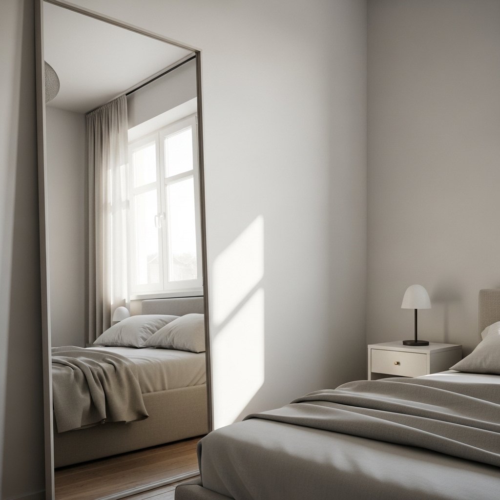 Mirrors are a powerful design tool for small bedrooms. A large mirror placed opposite a window reflects light and makes the room appear bigger. Slim-framed or frameless mirrors align perfectly with minimalist aesthetics. Besides adding depth, mirrors contribute to a clean and polished look. They enhance brightness without adding unnecessary décor.