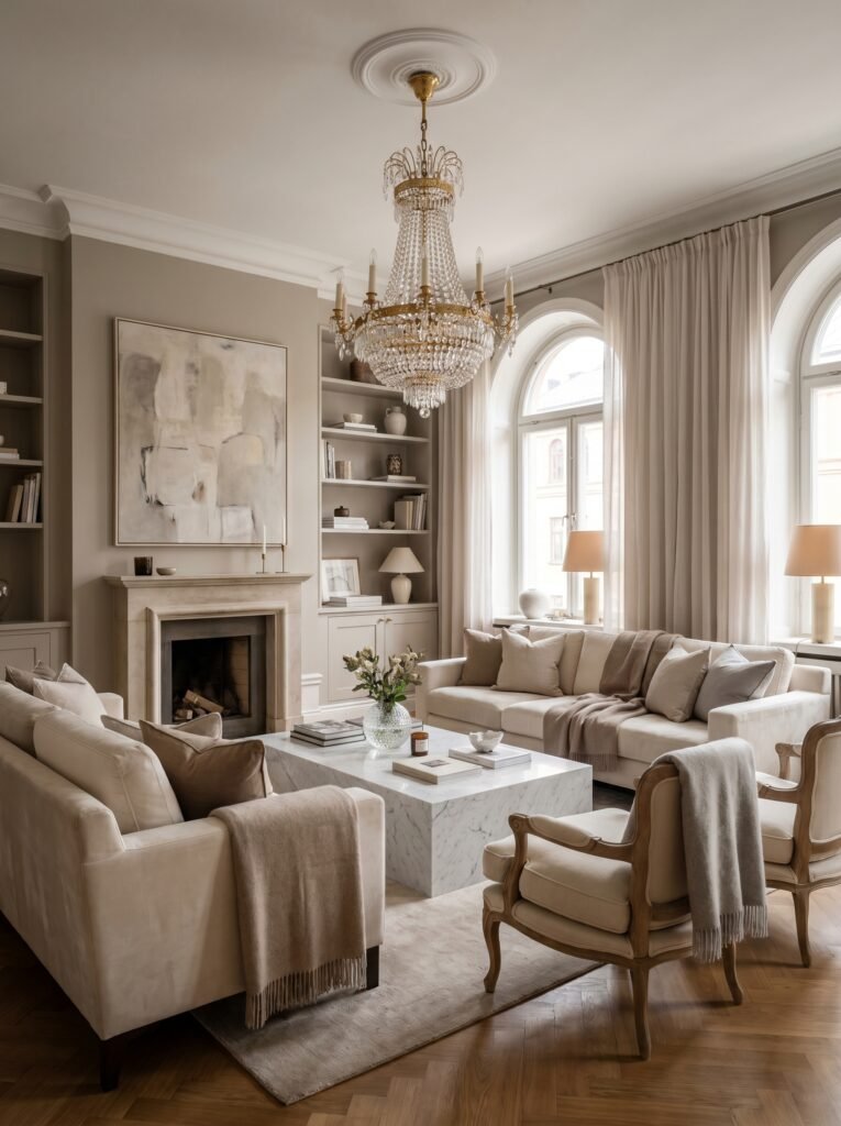 A modern classic interior living room blends traditional elegance with modern simplicity to create a space that feels both luxurious and inviting. This design style focuses on balanced aesthetics, combining clean lines with sophisticated details like molding, textures, and neutral color palettes. It is perfect for homeowners who appreciate timeless beauty but still want a fresh and updated look. By carefully selecting furniture, colors, and decor elements, you can achieve a living room that never goes out of style. In this guide, you’ll explore 12 fully optimized modern classic interior living room ideas to inspire your next home transformation.