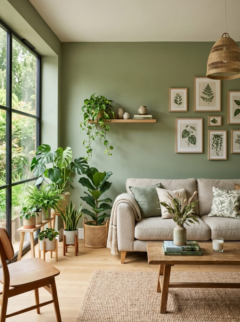 Green tones bring a sense of nature and freshness into your home. Shades like olive, sage, and forest green are particularly popular in modern interiors. They create a calming and balanced environment. Green works well in living rooms, kitchens, and even home offices. This paint idea helps connect indoor spaces with the natural world.
