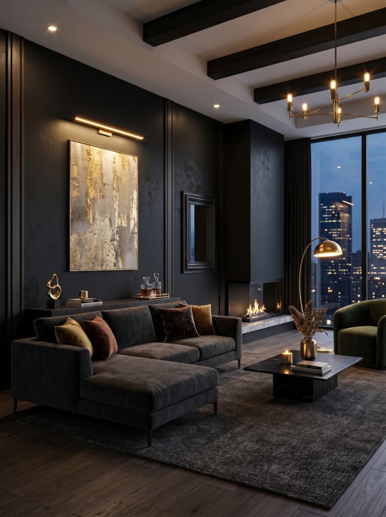 Matte black walls are a bold yet stylish choice for modern interiors. They add a sense of luxury and depth when used thoughtfully. This color works best in well-lit spaces or as an accent wall to avoid making the room feel too dark. Pairing black with metallic or light-colored décor creates a striking contrast. It’s an ideal option for those who want a dramatic and contemporary look.