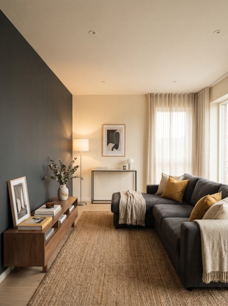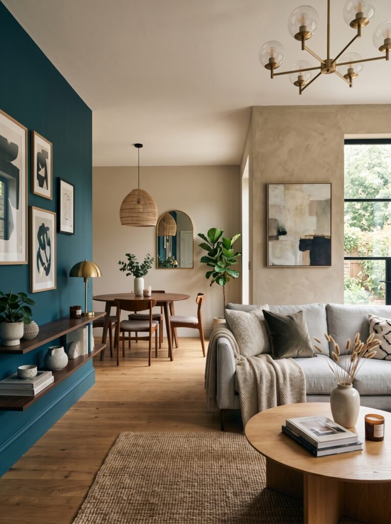 Adding a bold accent wall is an excellent way to introduce personality into a modern home. Deep shades like navy blue, emerald green, or charcoal can create a striking focal point. This approach prevents the space from feeling overwhelming while still adding visual interest. Accent walls work particularly well behind beds, sofas, or dining areas. They are an easy and cost-effective way to refresh any room.