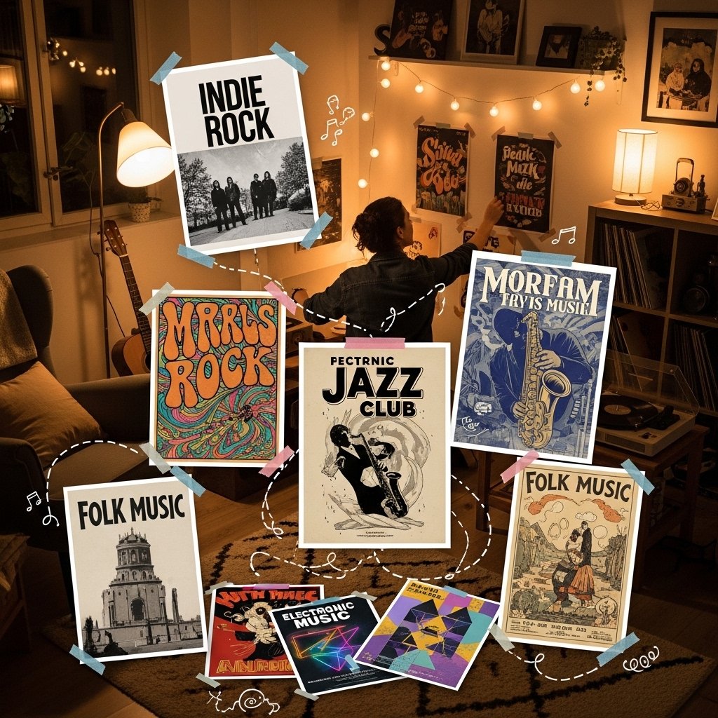Music poster wall decor aesthetic ideas are one of the easiest ways to transform a plain bedroom or living space into a personalized artistic environment. Posters inspired by favorite artists, albums, lyrics, and genres instantly add personality while keeping the room visually trendy. Whether your taste is vintage rock, indie pop, hip hop, or soft lo-fi vibes, a music themed wall becomes a reflection of your identity. The key is not just hanging posters randomly but styling them thoughtfully with colors, lighting, and layout balance. In this guide, you’ll discover twelve aesthetic music poster wall decor ideas to help you design a cozy and creative music-inspired space.