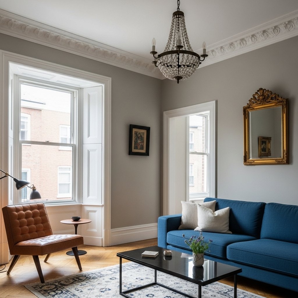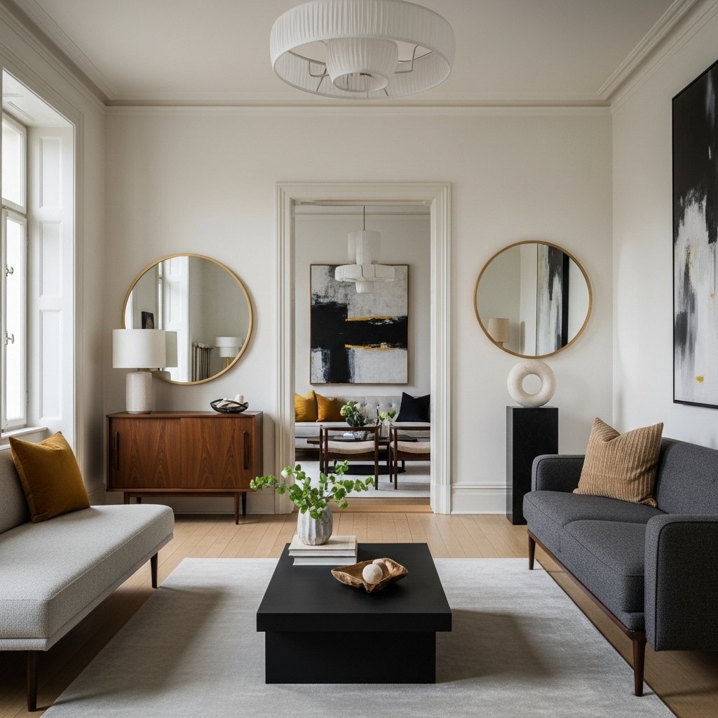 Old modern interiors benefit from a minimalist approach to decoration. Avoid clutter and focus on a few carefully selected statement pieces. This allows the architectural features and furniture to stand out. Choose artwork, mirrors, or sculptures that complement the overall theme. A clean and uncluttered space feels more modern while still honoring the home’s history.