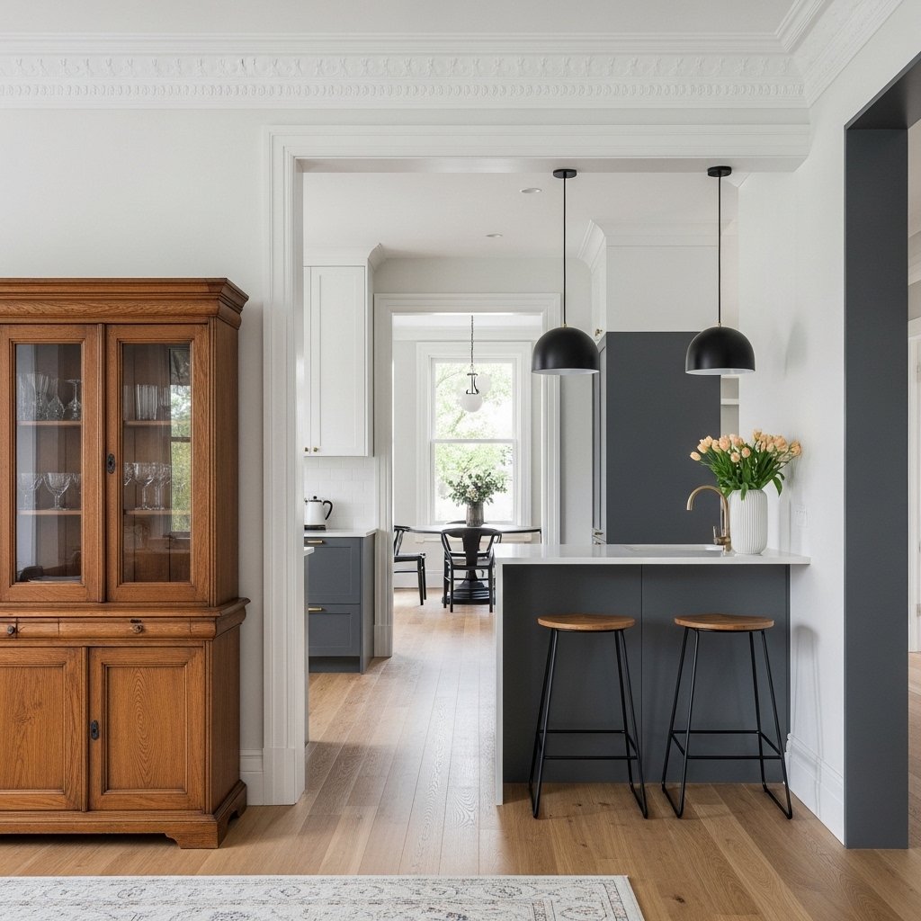 Natural materials like wood, stone, and linen help bridge the gap between old and modern design. These materials add warmth and texture to the space. Reclaimed wood or exposed brick walls can highlight the home’s heritage. Pair them with modern finishes like glass or metal for contrast. This combination creates a balanced and harmonious interior.
