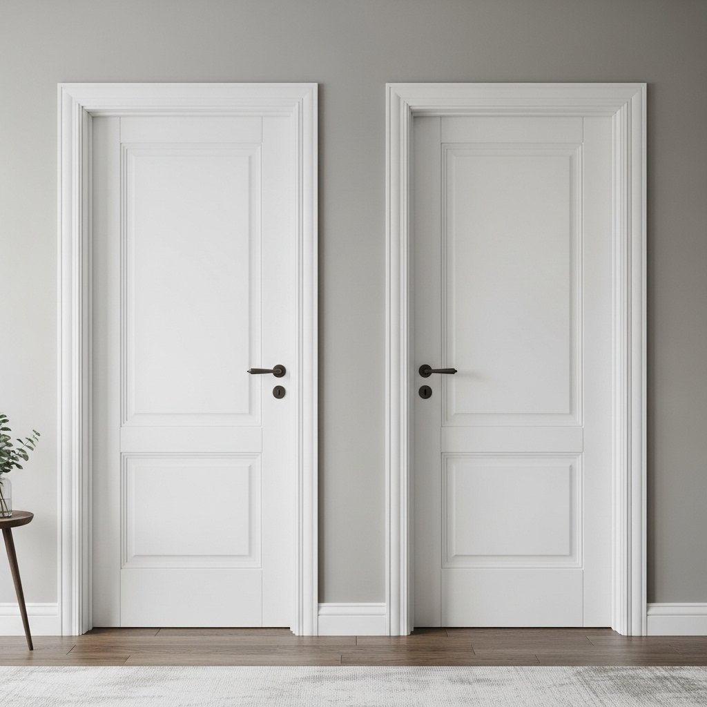 White painted interior doors remain one of the most popular choices because they offer a clean, fresh, and timeless appearance. They work well in almost any interior style, from modern minimalism to traditional homes. White doors help reflect light, making spaces feel brighter and more open. They also pair effortlessly with any wall colour, giving you flexibility in future design changes. This is a safe yet elegant choice for homeowners who prefer simplicity and long-lasting appeal.
