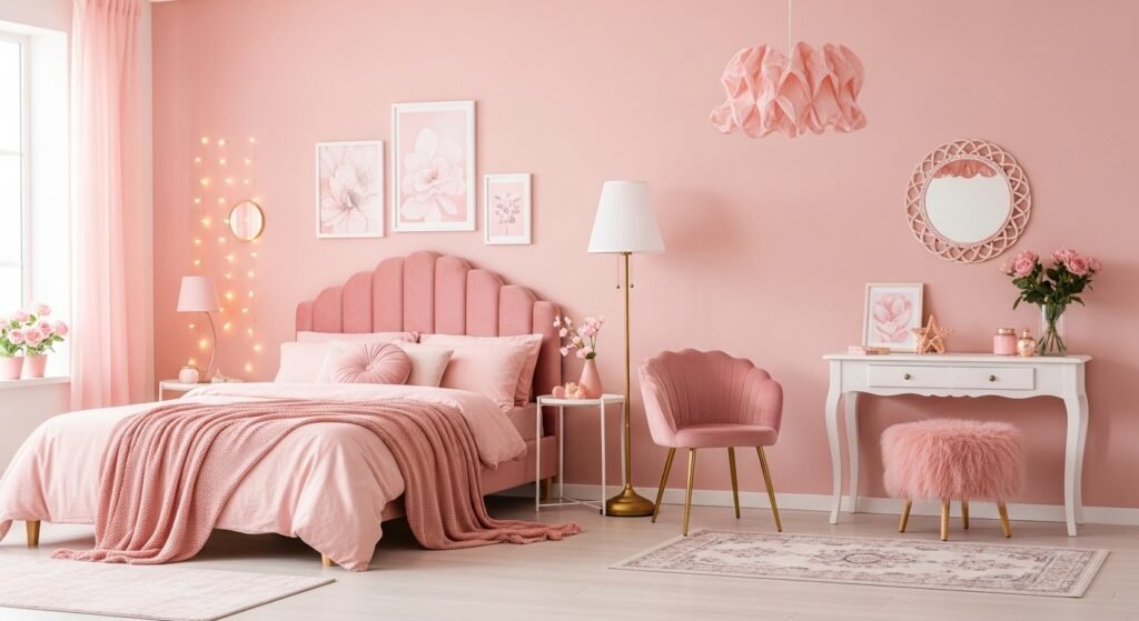 Furniture also plays an important role in pink room décor. A pink velvet chair, a blush headboard, or a painted side table can become a beautiful focal point. Keep the rest of the furniture neutral so the pink stands out naturally. This way, your room feels stylish instead of too colorful.