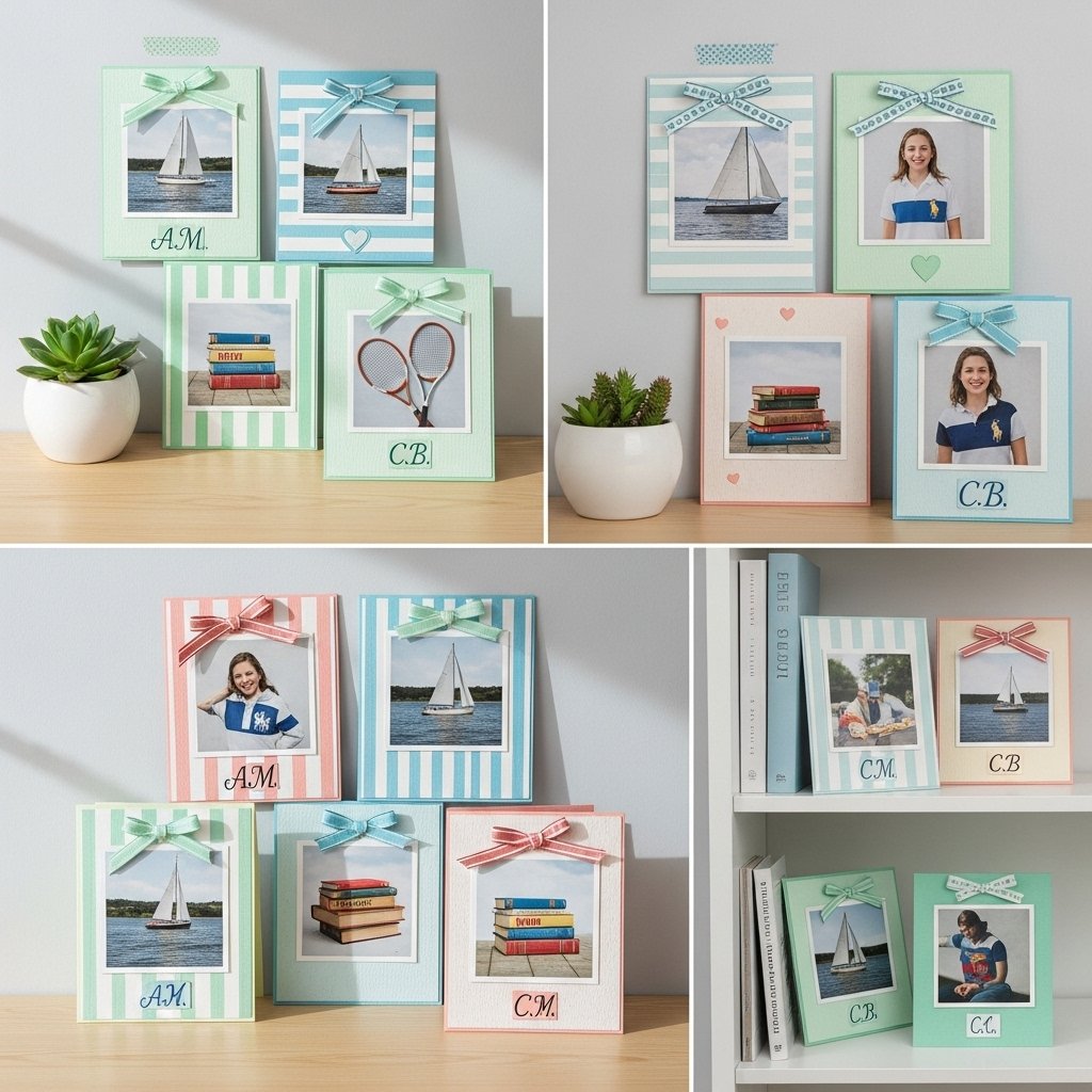 Paper photo frames are a creative way to display memories while maintaining a preppy aesthetic. Using pastel or patterned paper, you can create custom frames for printed photos or Polaroids. Add stripes, bows, or initials to personalize the design. These frames look beautiful on walls, desks, or shelves. They are lightweight, affordable, and easy to change whenever you want a refresh.