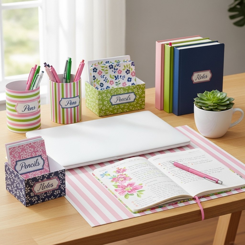 6. DIY Preppy Paper Desk Decor