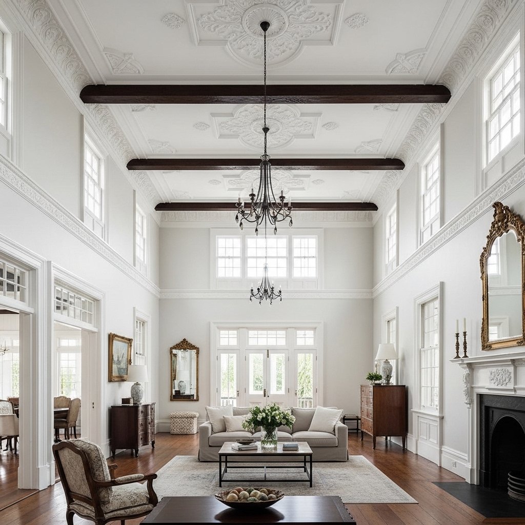 1. High Ceilings with Decorative Details