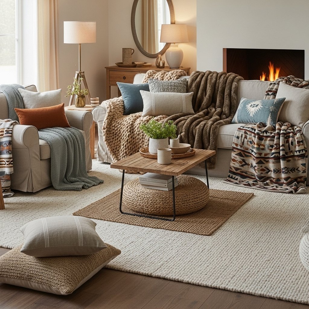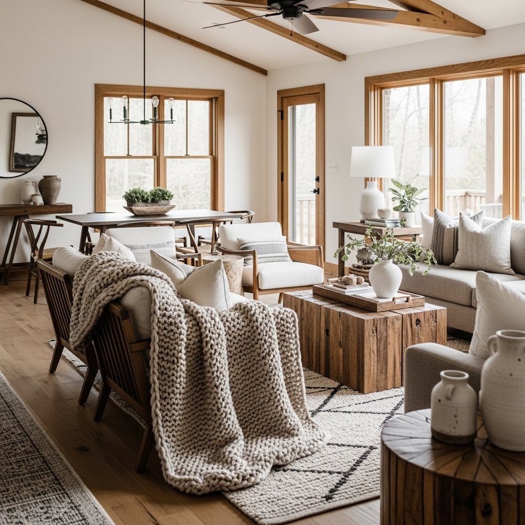 Layering textiles is a simple way to make ranch style interiors feel warm and comfortable. Use throw blankets, cushions, and rugs to add softness and color. Choose natural fabrics that complement the overall decor theme. Layering different textures creates visual interest while enhancing comfort. This final touch ties the entire space together beautifully.