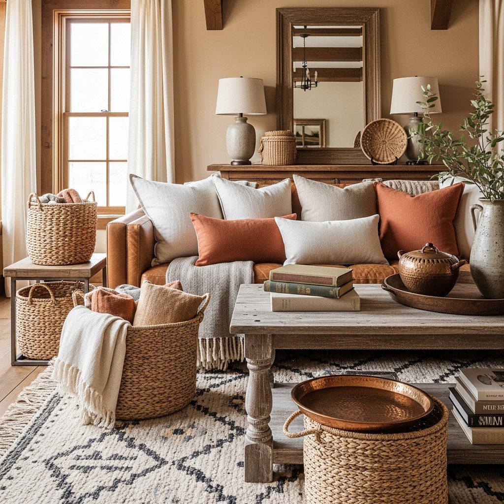 Adding texture is essential to bring depth and character to ranch style interiors. Materials like leather, linen, wool, and woven fabrics work beautifully in this setting. Rustic decor elements such as vintage items, baskets, and handcrafted pieces add personality. Mixing textures prevents the space from feeling flat or overly simple. This creates a warm and layered look that feels inviting.