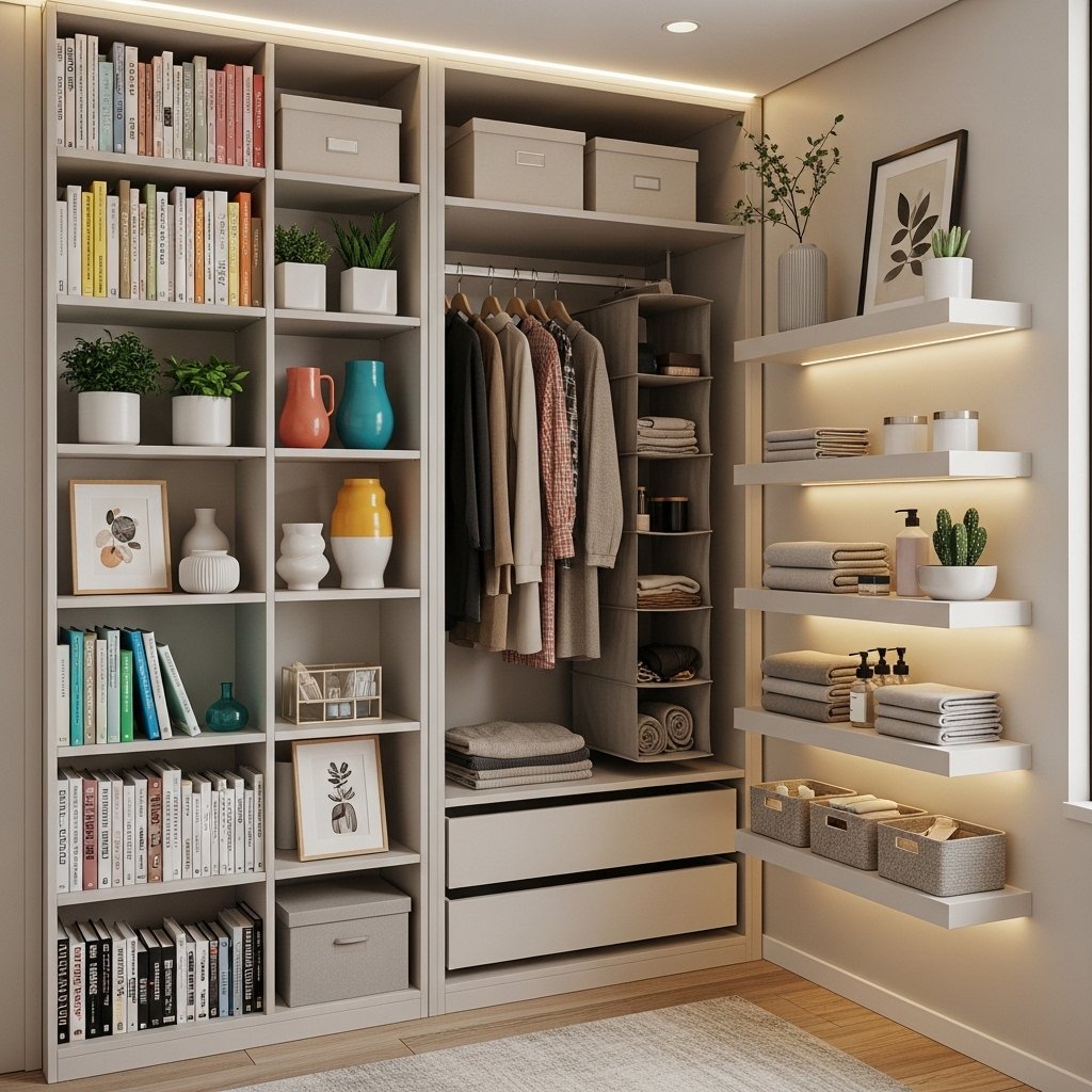 Vertical storage solutions make small bedrooms more functional without sacrificing floor space. Wall-mounted shelves, tall wardrobes, or hanging organizers draw the eye upward and provide extra storage. Floating shelves are perfect for books, plants, or decorative items while keeping surfaces free. Using vertical space reduces clutter on the floor, contributing to a cleaner, more relaxing environment. This technique is ideal for maximizing storage in compact rooms while maintaining an airy atmosphere.