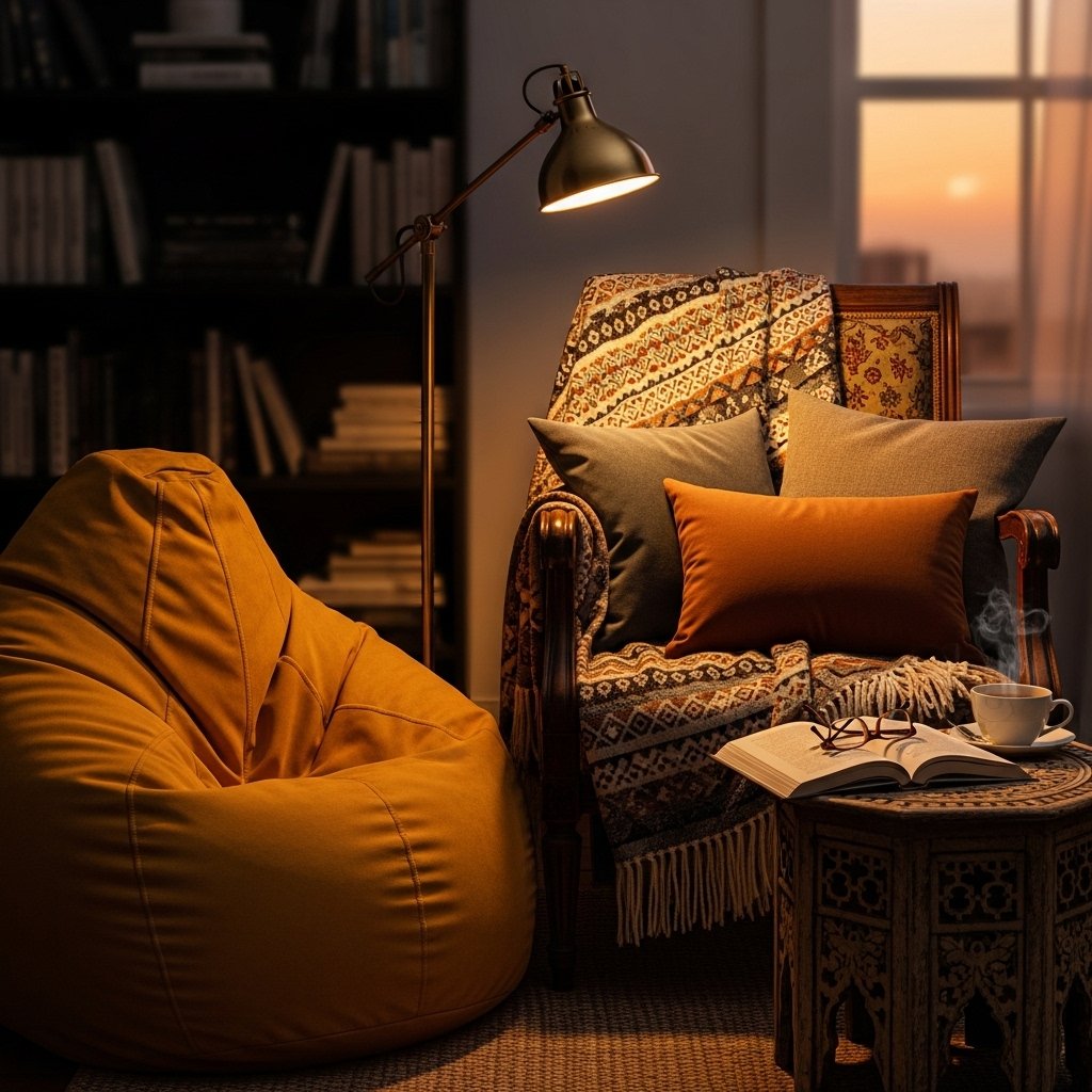 A dedicated relaxation corner enhances comfort and visual appeal at the same time. Add a floor cushion, bean bag, or vintage armchair with a warm lamp beside it. Layer blankets and textured pillows to make the space inviting. This area becomes perfect for reading, journaling, or listening to music. Every retro room benefits from a cozy personal retreat spot.