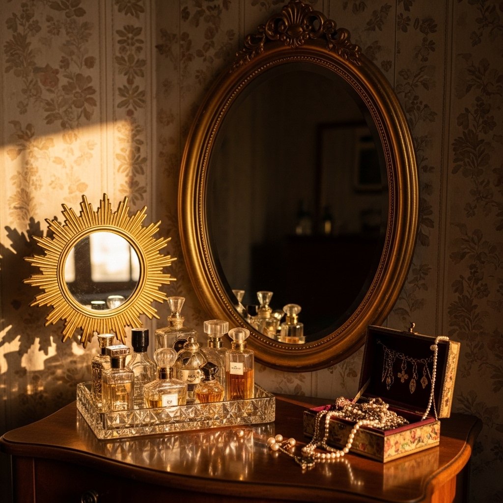 Vintage mirrors bring elegance and light reflection while enhancing the retro aesthetic. Oval mirrors, gold frames, and sunburst designs are classic vintage choices. Pairing a mirror with a small vanity table creates a stylish focal area. Adding perfume bottles, jewelry trays, and small lamps completes the nostalgic look. This decor idea blends beauty and functionality effortlessly.